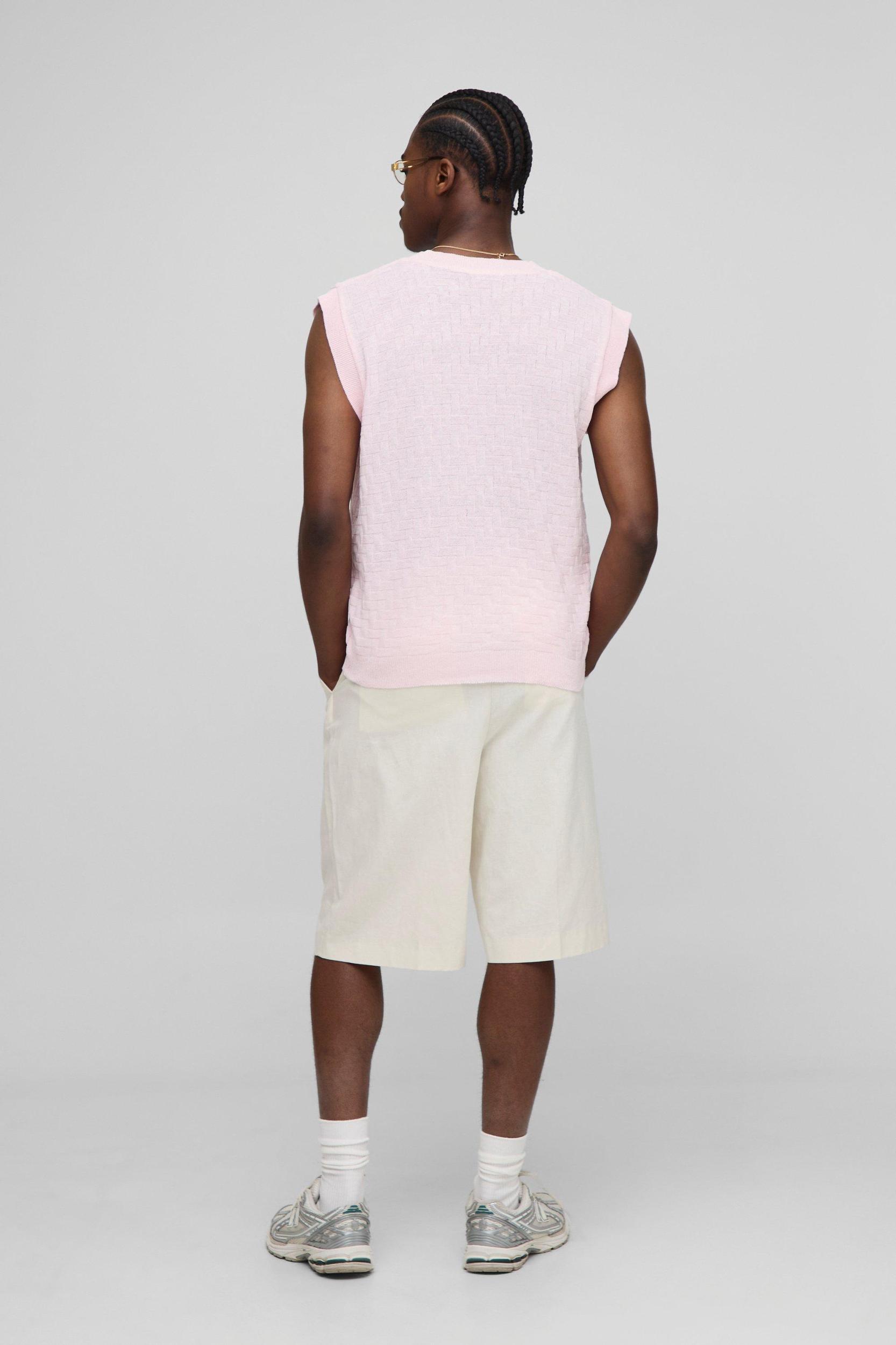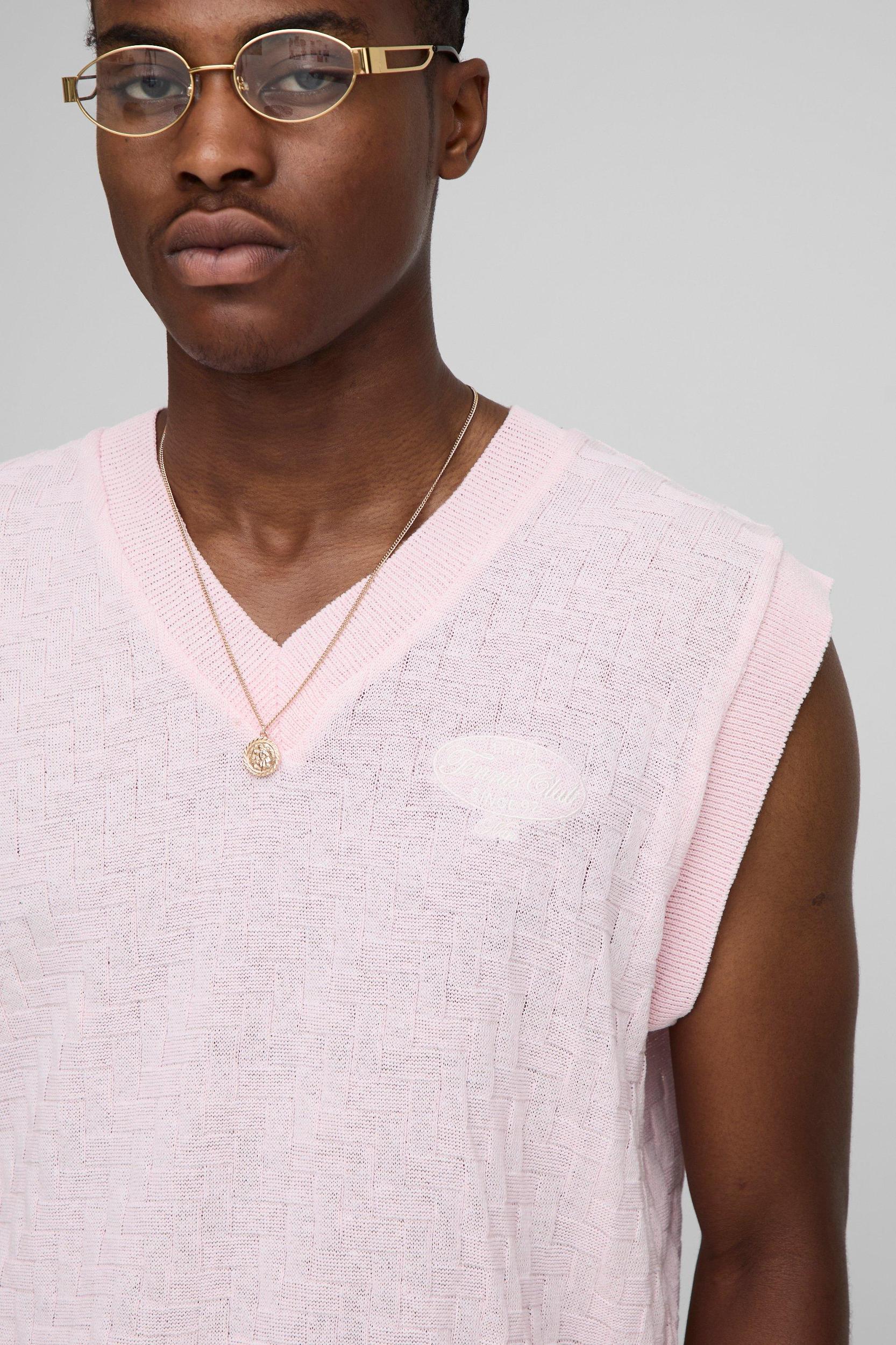 Boxy Regular Embroidered Crosshatch Knitted Vest | boohooMAN USA Product Image