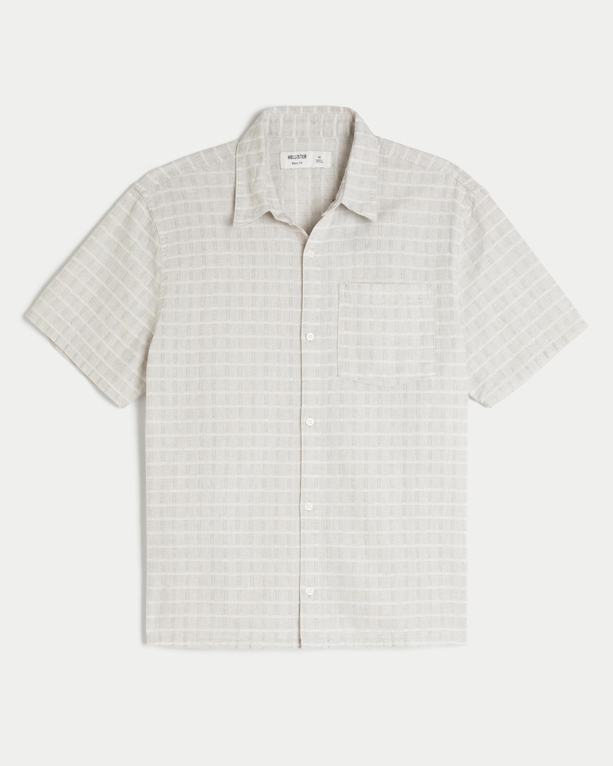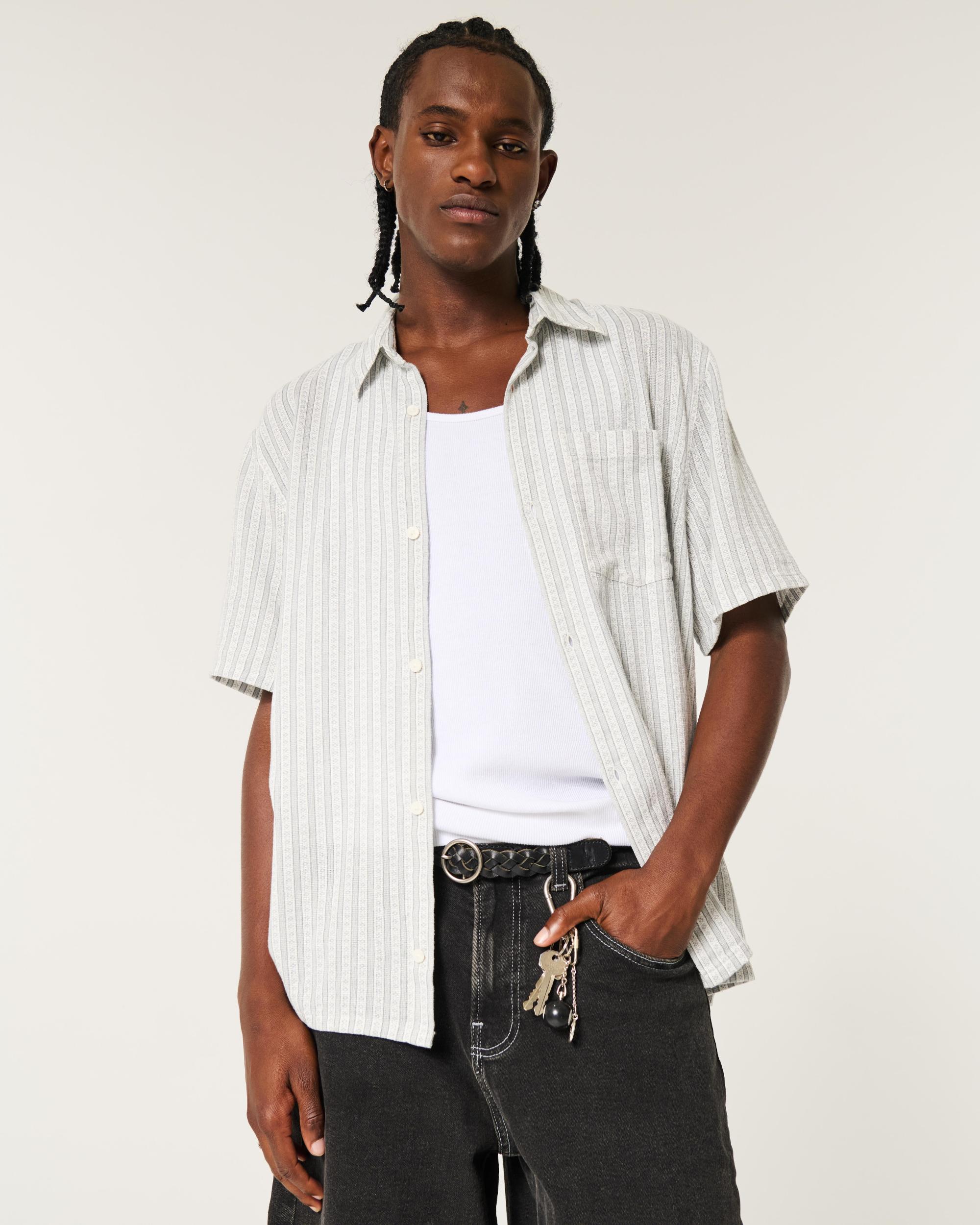 A classic, comfortable shirt with short sleeves and a full button closure. Left chest pocket, collar. Boxy Fit.
