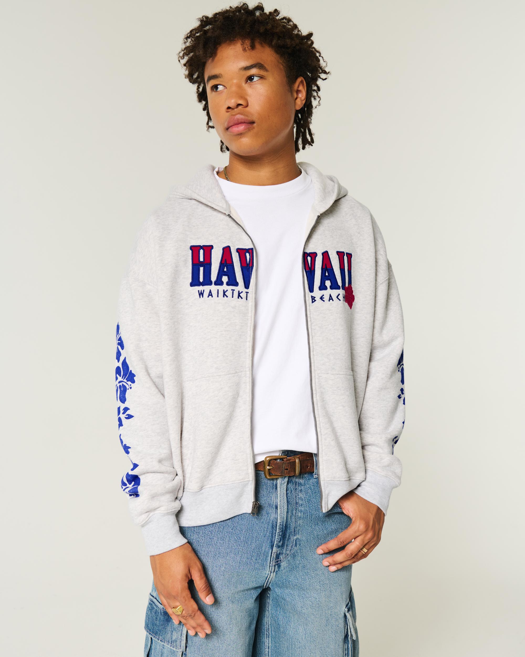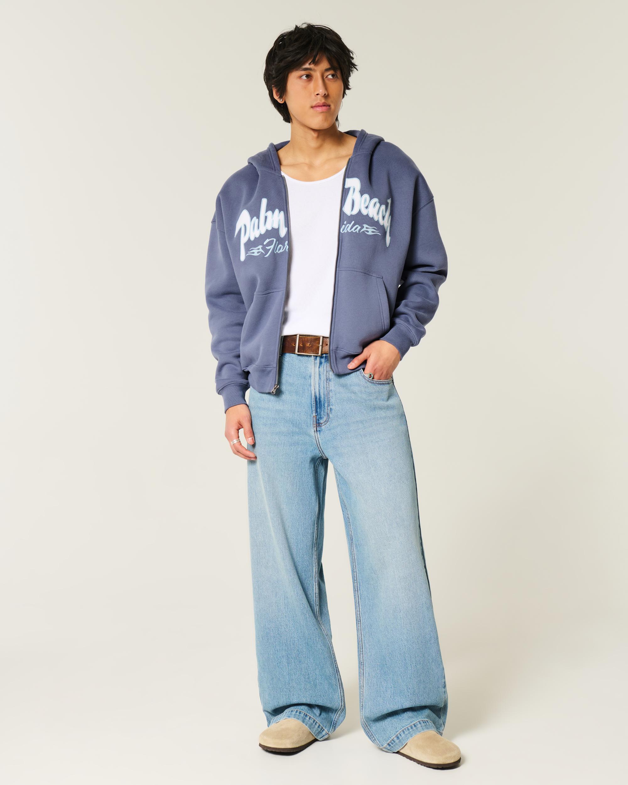 Super soft and comfortable, this fleece sweatshirt features Palm Beach graphic applique and embroidery. Full zip-up closure, front pockets. Boxy Fit.