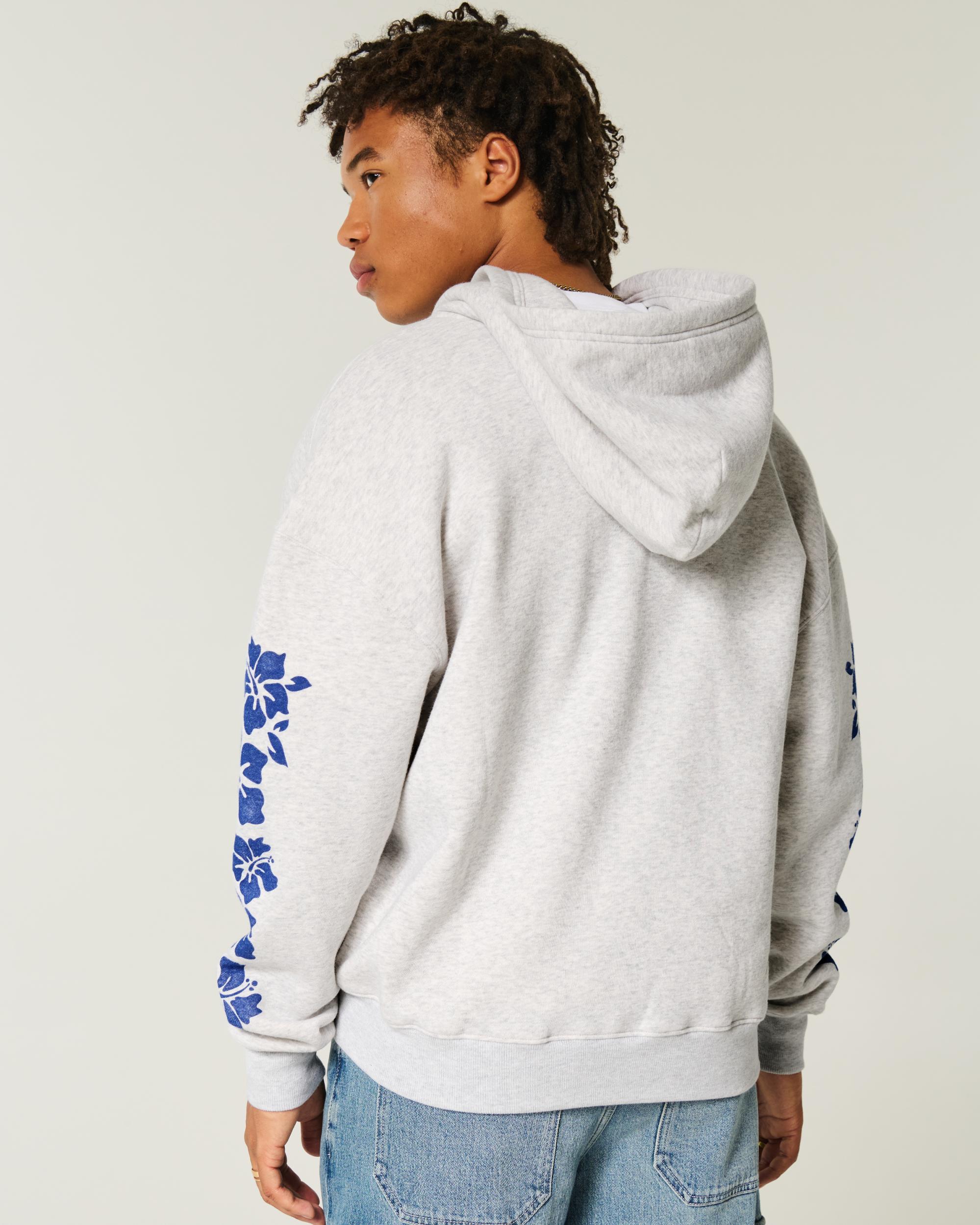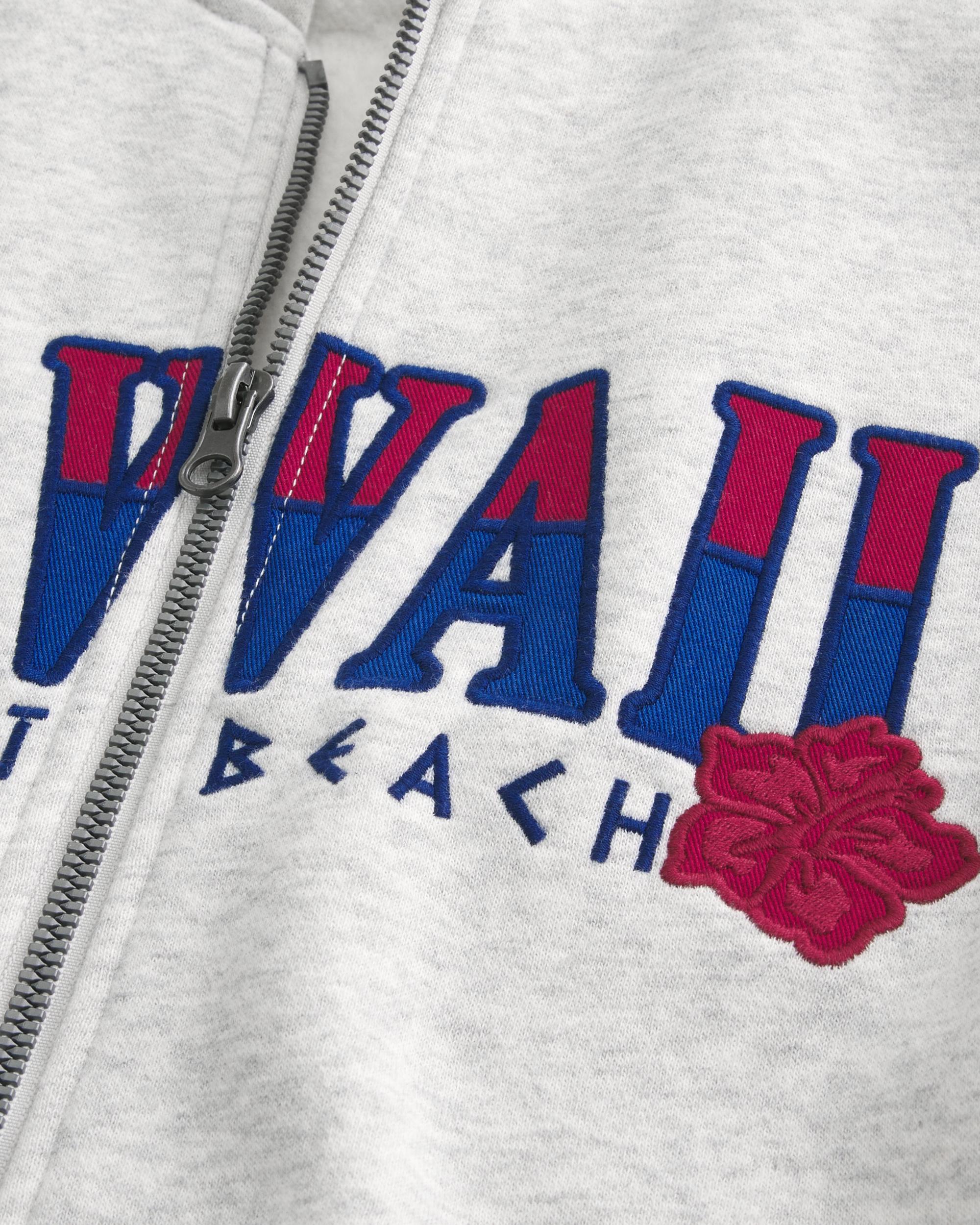 Boxy Zip-Up Palm Beach Graphic Sweatshirt