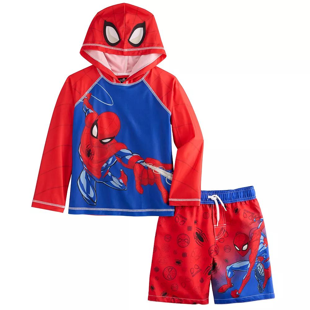 Help your little one enjoy their time in the sun with this boys Marvel Spider-Man web-slinging two-piece hooded rashguard and swim trunks set, perfect for any little fan! Click on this KIDS APPAREL & SHOES GUIDE to find the perfect fit and more!Help your little one enjoy their time in the sun with this boys Marvel Spider-Man web-slinging two-piece hooded rashguard and swim trunks set, perfect for any little fan! Click on this KIDS APPAREL & SHOES GUIDE to find the perfect fit and more!FEATURES Includes: hooded rashguard and swim trunks Top: pullover styling; Trunks: pull-on Attached hood Long sleeves Functional drawstring waistband UPF 50+ sun protection Regular fitFABRIC & CARE Rashguard: polyester, spandex; Trunks: polyester Mesh lining Machine wash Imported Size: 4. Color: Red. Gender: male.