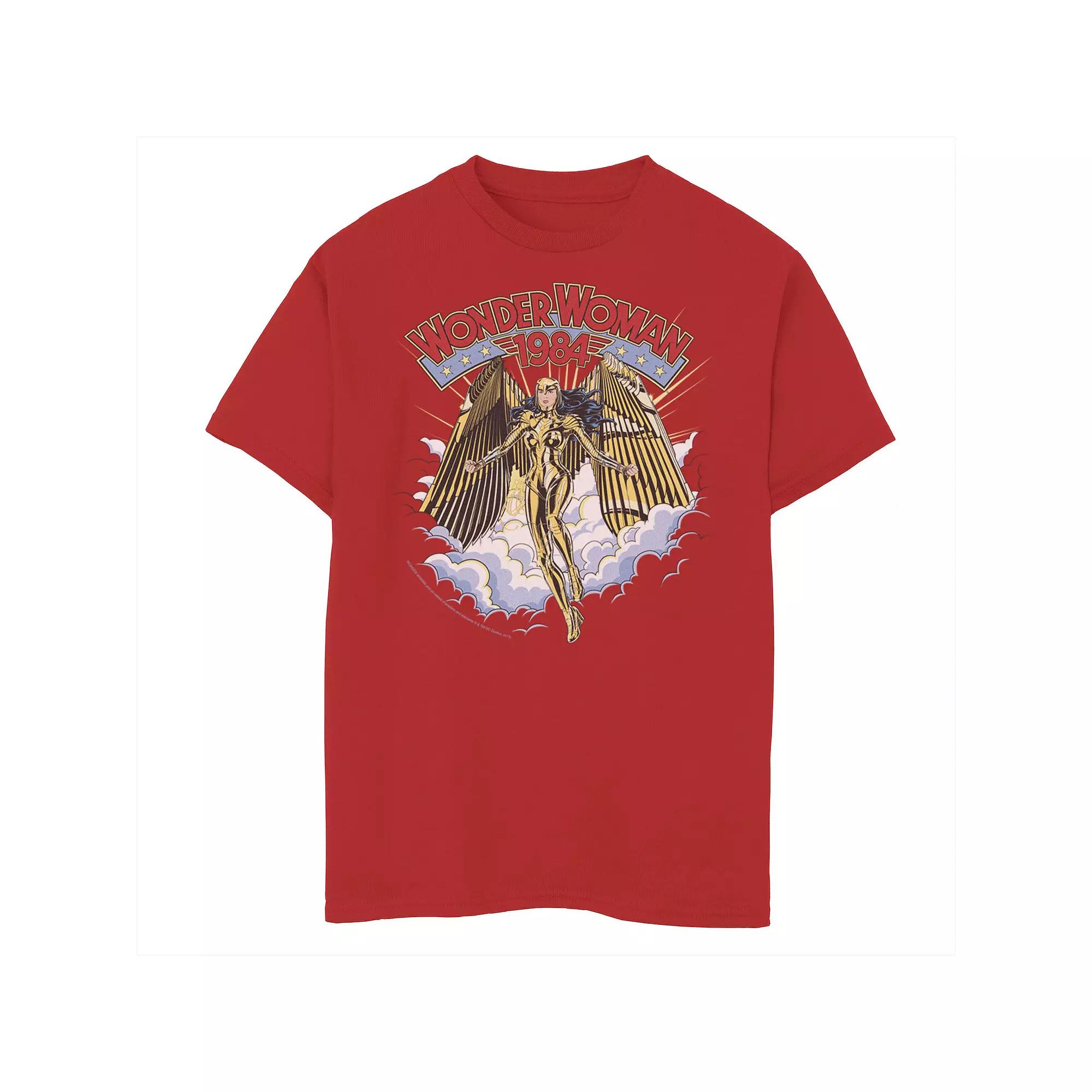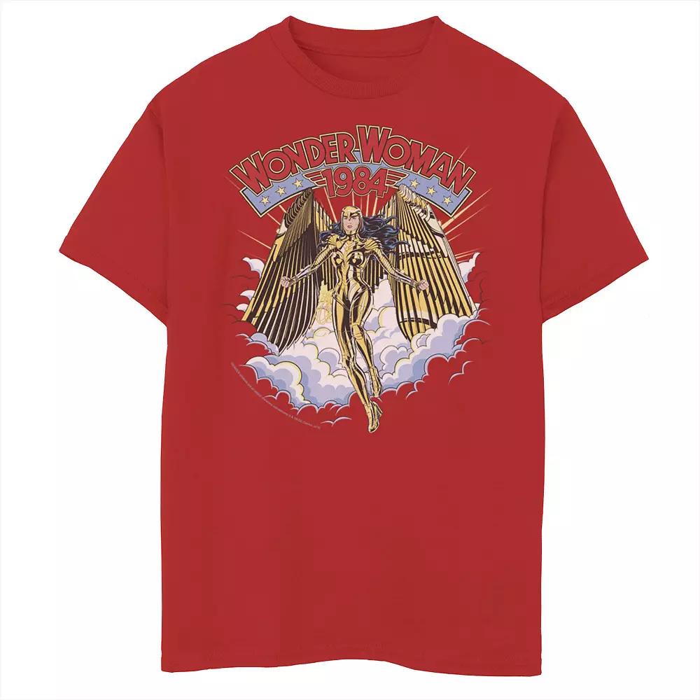 Hell love showing off his favorite look with this boys DC Comics Wonder Woman 1984 Gold Suit Clouds Portrait Graphic Tee. Hell love showing off his favorite look with this boys DC Comics Wonder Woman 1984 Gold Suit Clouds Portrait Graphic Tee. Crewneck Short sleevesFABRIC & CARE Cotton Machine wash Imported Size: Small. Color: Red. Gender: male. Age Group: kids.
