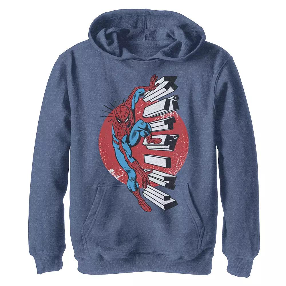 Hell feel super in this Boys 8-20 Marvel Spider-Man Kanji Climbing Stairs Graphic Hoodie. Hell feel super in this Boys 8-20 Marvel Spider-Man Kanji Climbing Stairs Graphic Hoodie. Hooded Long sleeve Graphic on chestFABRIC & CARE Cotton, polyester Machine wash Imported Size: Large. Color: Navy Heather. Gender: male. Age Group: kids.