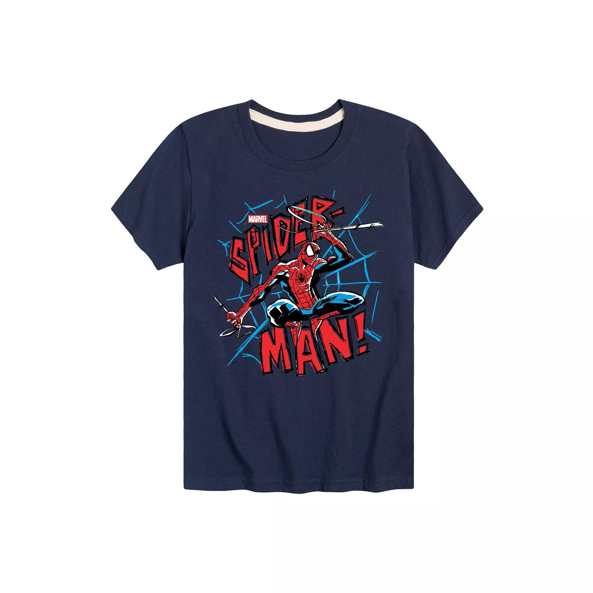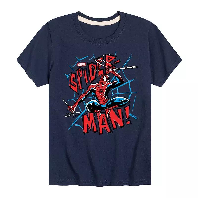 Max out his casual style with this Boys' Marvel Spider-Man Web Swinging Sketch Graphic Tee.FEATURES Crewneck Short sleevesFABRIC & CARE Heather Colors: Cotton/Polyester, Solid Colors: Cotton Machine wash Imported Size: X Large. Color: Navy. Gender: male. Age Group: kids.