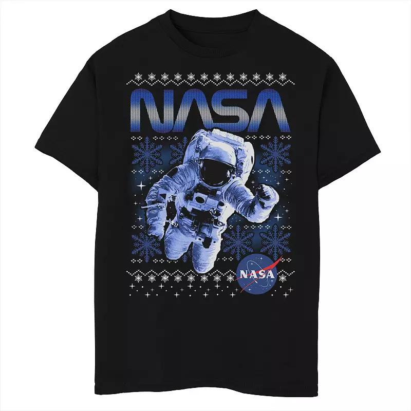Boys 8-20 NASA Astronaut Santa Hat Logo Ugly Sweater Graphic Tee, Boys