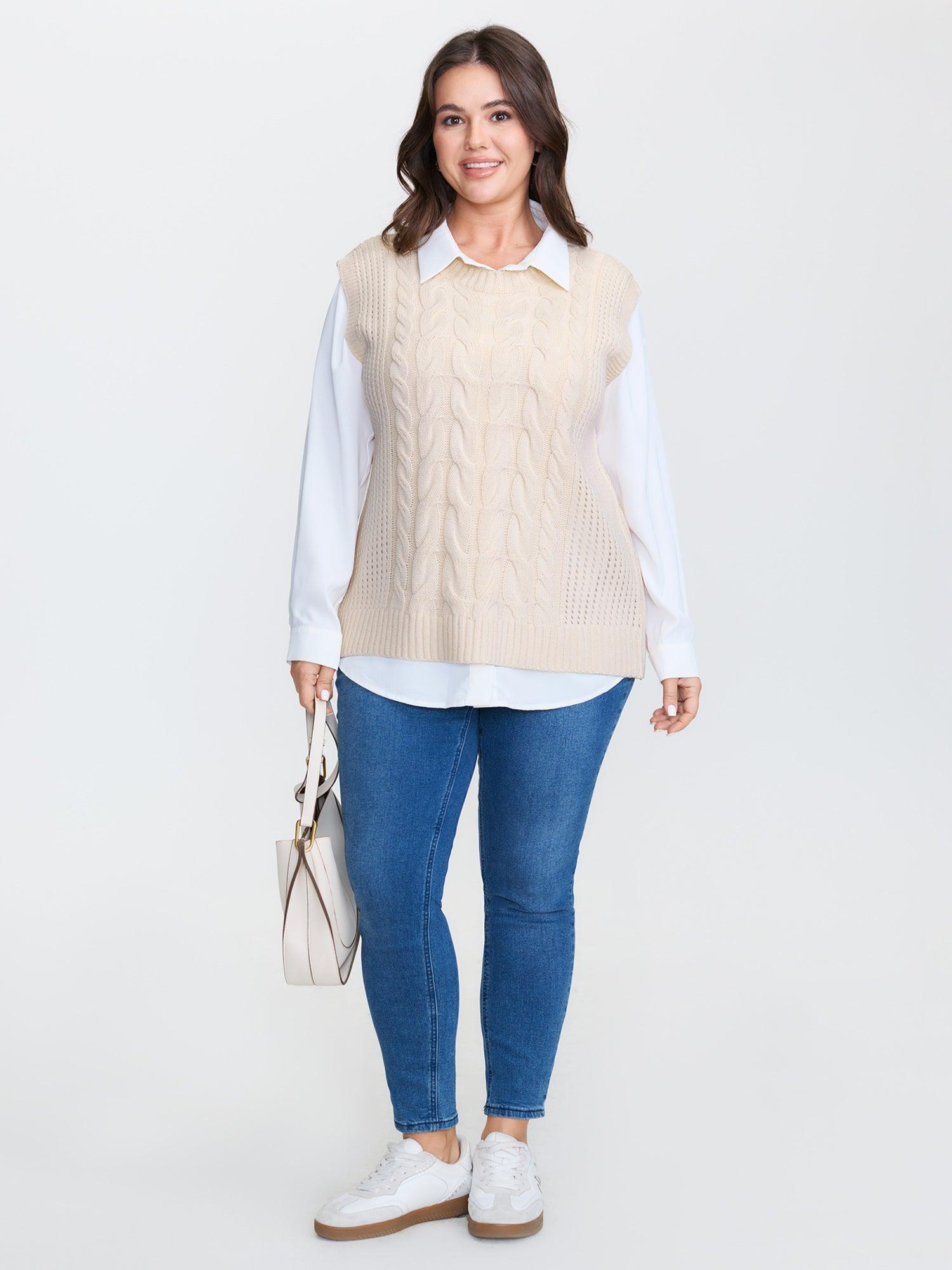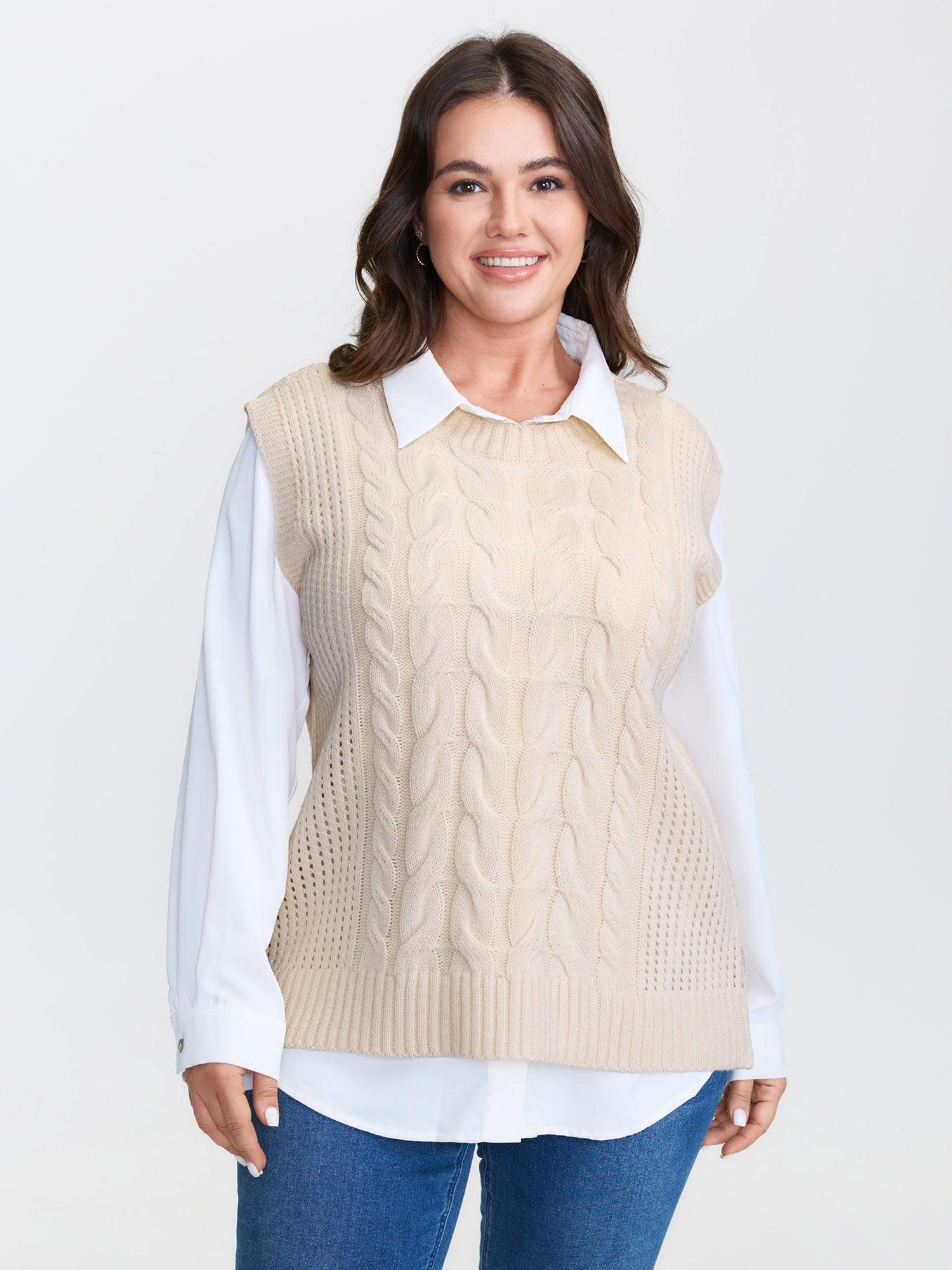 Shop Braided Texture Ribbed Hem Sleeveless Pullover now and redefine your style with confidence at BloomChic. Tailored for mid and plus-size women. This trendy Sweaters Cardigans Women, sizes 10-30. Color:Beige;Style:Leisure;Neckline:Round Neck;Sleeve Type:Sleeveless;Prints:Non;Details:Texture, Cable Knit;Pocket:No-pocket;Belt:No-belt;Closure Type:Non