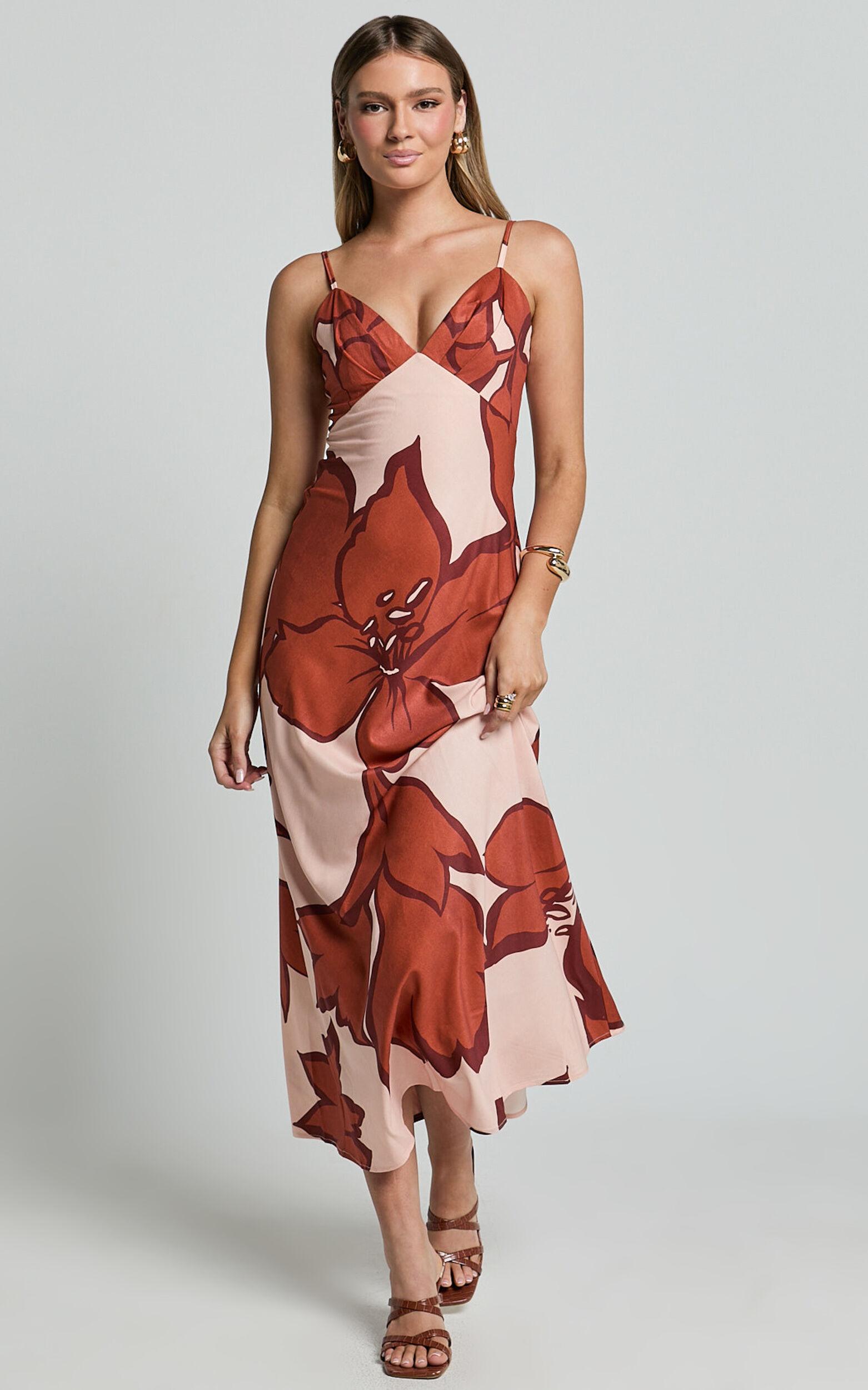 Elevate your style with our Brandi Midi Dress! This isn't just any dress; it's a testament to the power of feeling fabulous in your own skin. Crafted with care in a luscious Hazel Garden Print, it's where comfort meets elegance in a dance of creamy satin polyester that cascades gently against your curves. This piece isn't just a dress; it's an experience.Product Details:Zips detailInner liningSlip dressSatin fabricV neckCasual wearMidi lengthSleevelessPolyester materialSize and FitSize S / 8 length: 122cm / 48.03inMaterial and Care100% PolyesterNo Stretch
