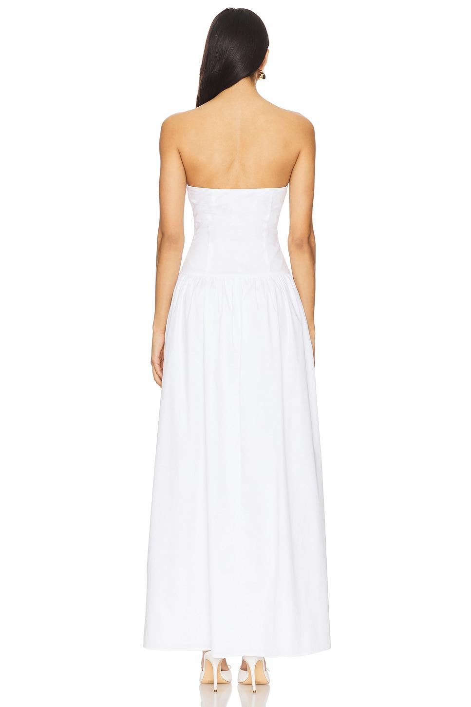 Self: 70% cotton, 27% nylon, 3% elastaneLining: 100% polyester. Made in China. Hand wash cold. Fully lined. Hidden side zip with hook and eye closure. Strapless design with nonstick silicone trim. Midweight poplin fabric. Neckline to hem measures approx 49.5" in length. Revolve Style No. AAYR-WD153. Manufacturer Style No. ATD159 R25.