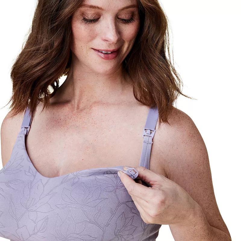 The soft curves of this new balconette style Bravado Designs Intrigue Maternity & Nursing Bra will complement your neckline and comfortably add a little lift to your day without anything digging in. Featuring a wireless silhouette that will stretch with your changes and flatter your body so you can feel pretty and feminine all day long. The soft curves of this new balconette style Bravado Designs Intrigue Maternity & Nursing Bra will complement your neckline and comfortably add a little lift to your day without anything digging in. Featuring a wireless silhouette that will stretch with your changes and flatter your body so you can feel pretty and feminine all day long. FEATURES Balconette silhouette provides support and lift Wireless design 360 degree stretch fabric hugs and supports your body Molded cups reduce compression while providing separation and natural shape Inner sling connects from side to side Contoured and perforated removable foam inserts provide a smooth natural shape Secure Bravado B nursing clips you can use with one hand - tested to hold up to 25 lbs. Jacquard print Style no. 11042BALIFT & LINING Minimal lift Wireless Lightly padded cupsSTRAPS & HOOKS Adjustable modern luxe straps Hook-and-eye closure 3 hook columns 4 hook rowsFABRIC & CARE Body: nylon, spandex Lining: polyester Machine wash Imported 89% nylon, 11% spandexSUSTAINABILITY FEATURES Tested for harmful substances STANDARD 100 by OEKO-TEX CERTIFIED Certification No. 17.HUS.20152 Testing Institute: Hohenstein Textile Testing Institute www.oeko-tex.com/standard100 Size: X Large. Color: Lt Purple. Gender: female. Age Group: adult.