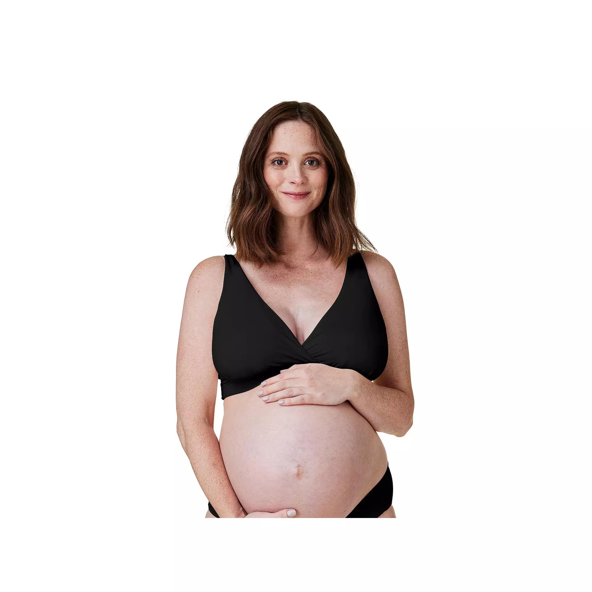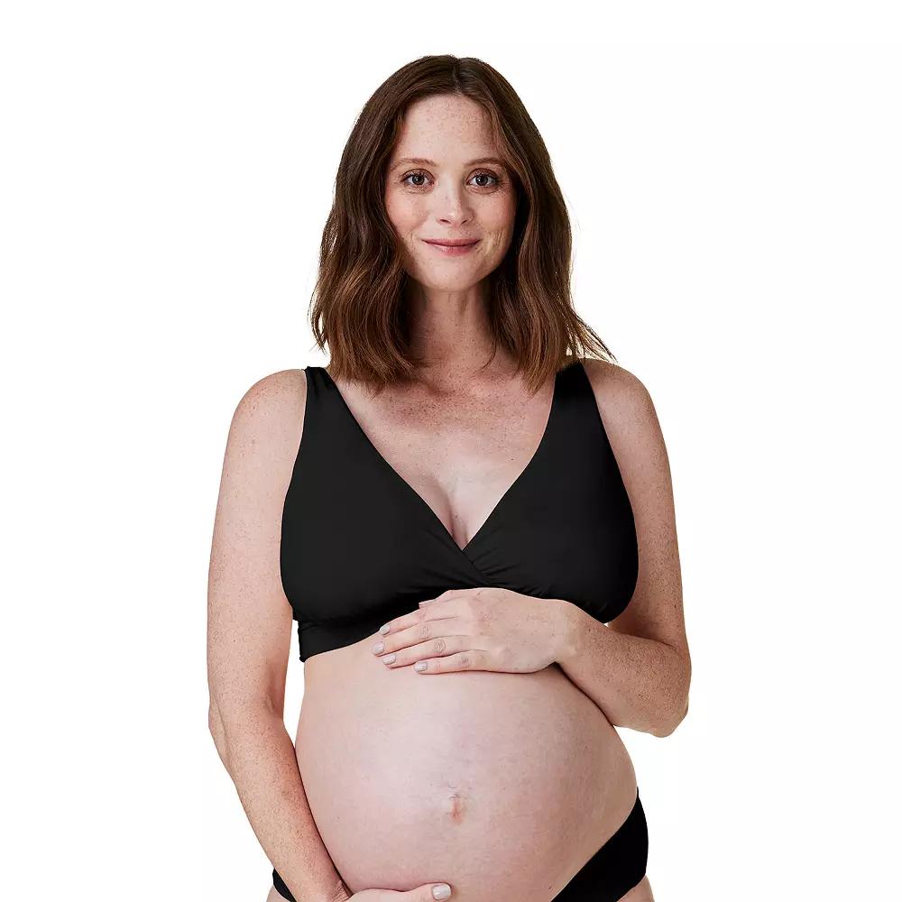 A bra that you could feel good wearing all day - the Ballet Bra combines sustainable ultra smooth recycled nylon on the outside and ultra soft TENCEL™ Modal on the inside. The result is a luxurious and lightweight bra that packs a lot of comfort into a sleek and elegant silhouette. Soft enough to wear from day to night, it's comfort and functionality for every stage of life. It's a bra that takes care of you, and the planet too. • Wider shoulder straps for better support • Added ply of mesh lined between outer and inner fabric layers for increased support • Increased cup capacity through exterior gathering around cups for more capacity without bulk, plus interior princess seam adds strength and support for fuller cups • STANDARD 100 by OEKO-TEX® certifies that this product and its components have been tested to keep you and your family safe from harmful substances (21.HCA.67724, Hohenstein HTTI) | Bravado Designs Women's Ballet Full Cup Everyday, Maternity & Nursing Bralette, Black, X-Large