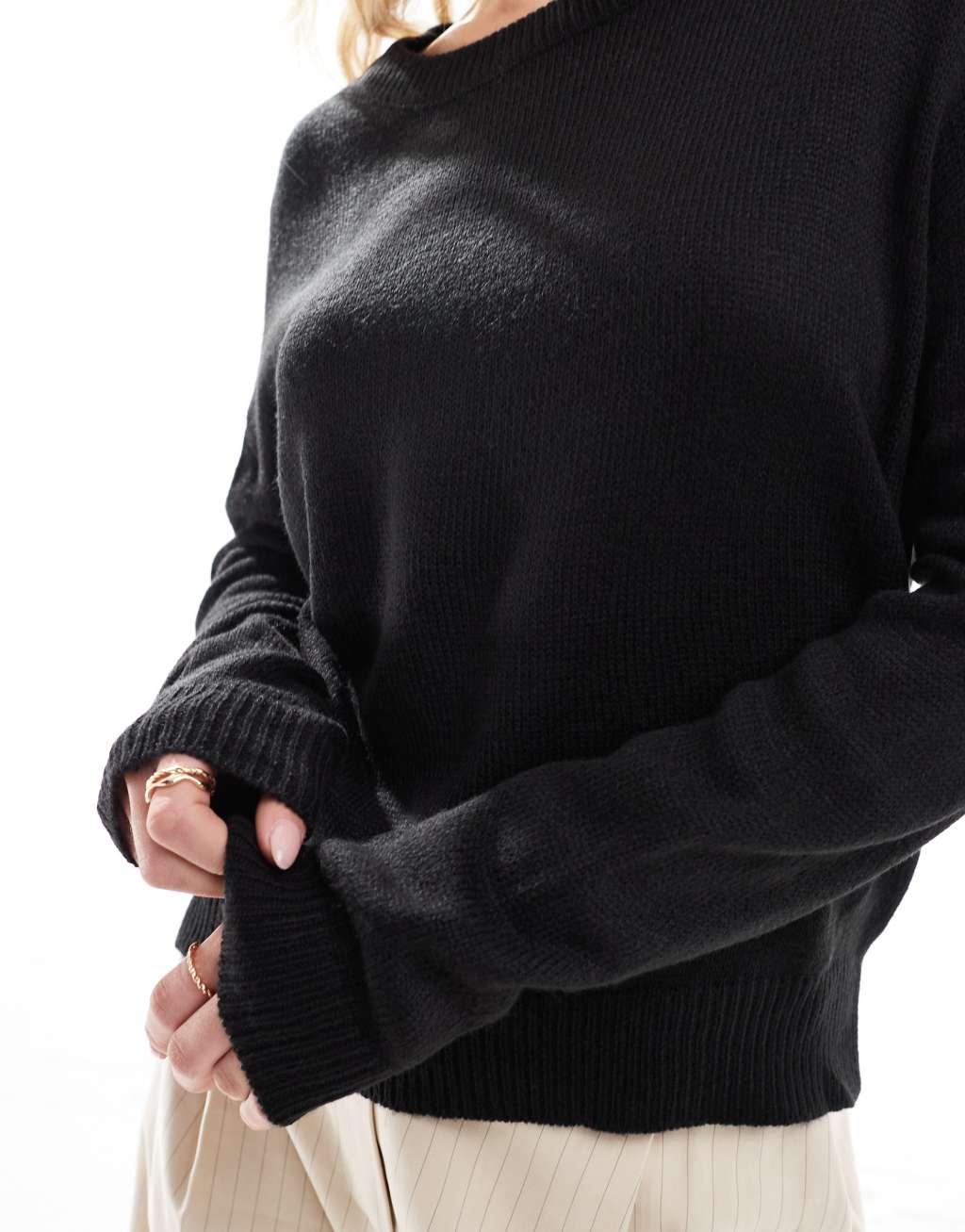 Brave Soul Petite crew neck sweater in black