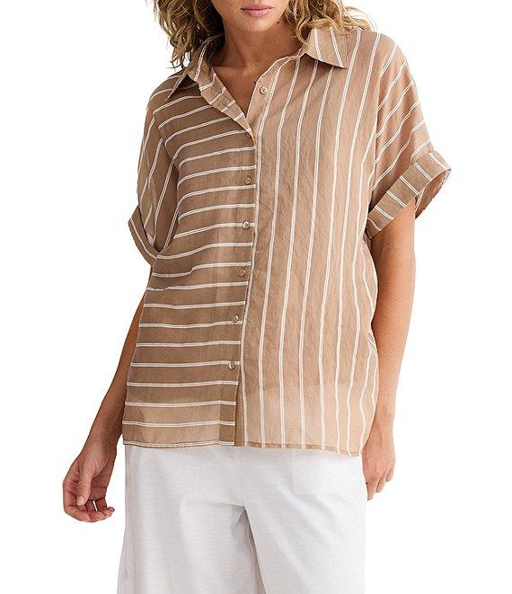 Brave + True Alice Short Sleeve Striped Button Down Blouse