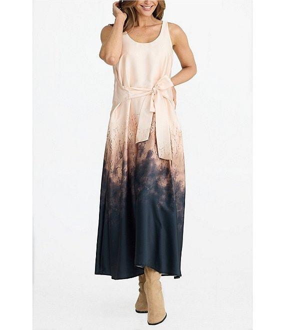 Brave + True Audrey Sleeveless Scoop Neckline Tie Back Ombre Print Maxi Dress