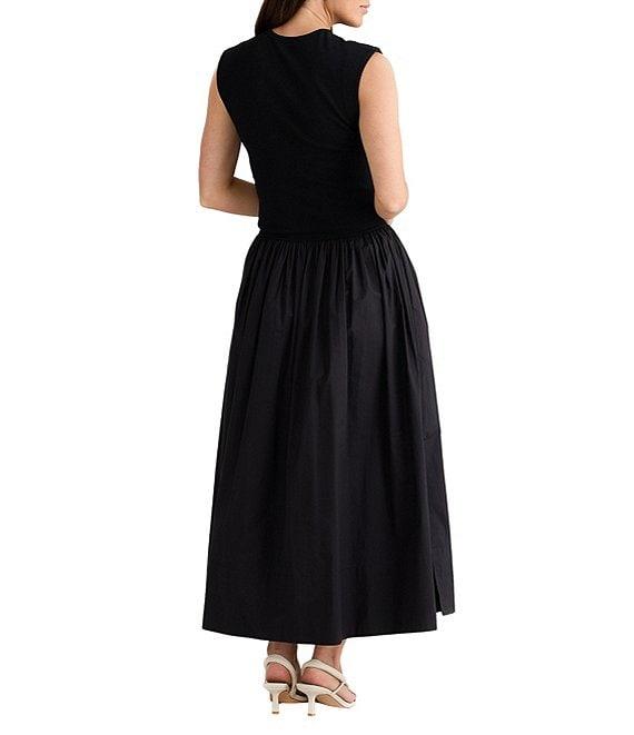 From Brave and True, this dress features: Jersey rib body with cotton skirt Solid body and solid skirt Crew neckline Sleeveless Side seam pockets Full length skirt with small side slit Pullover construction Approx. 53" in length Cotton/elastane Machine wash/dry flat Imported.