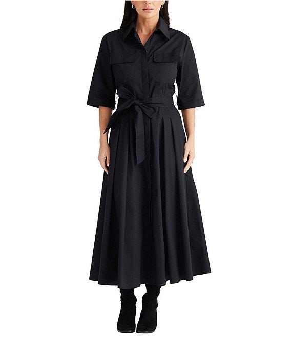 Brave + True Rosellini 3/4 Sleeve Collared Button Front Shirt Maxi Dress