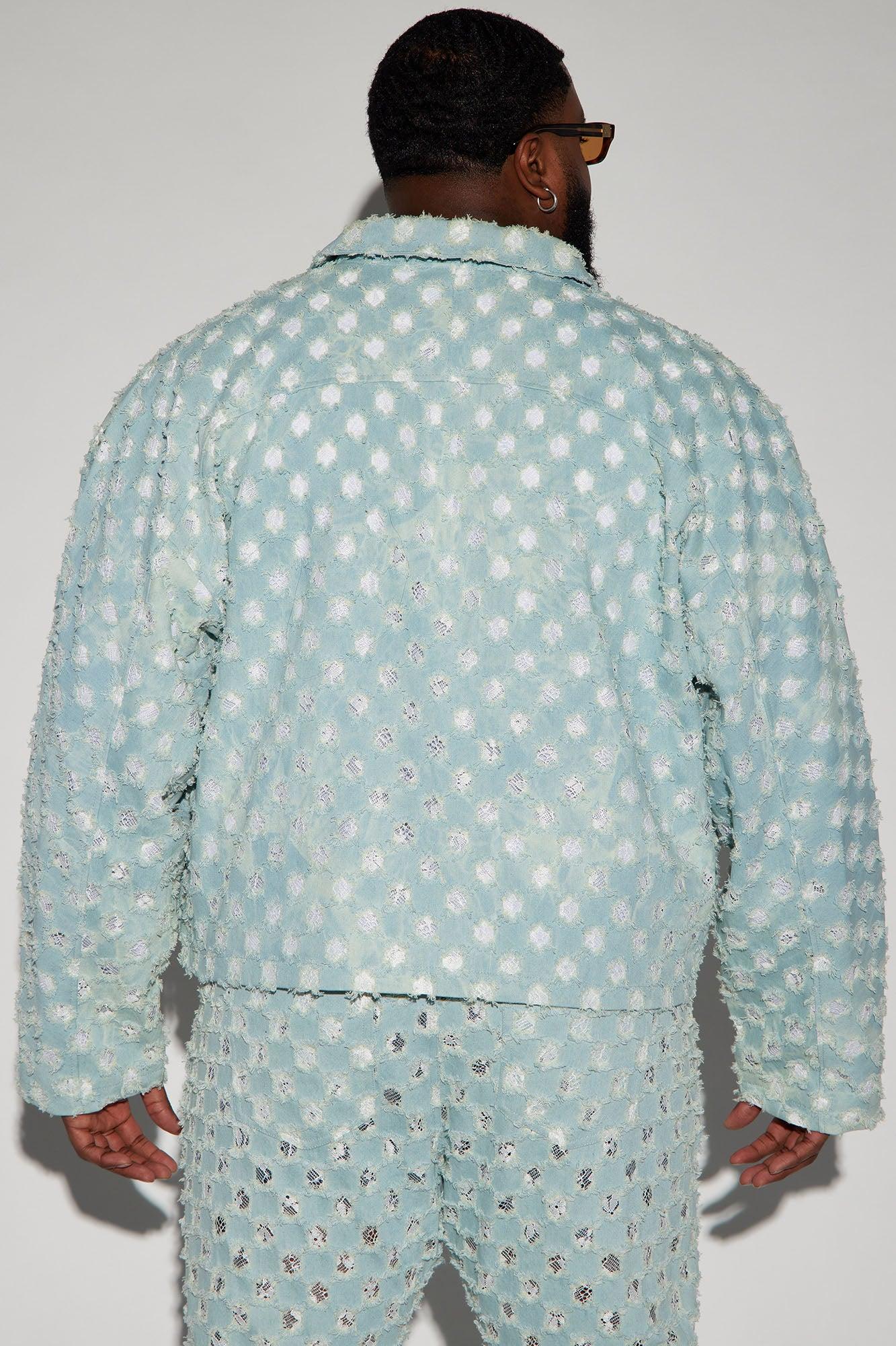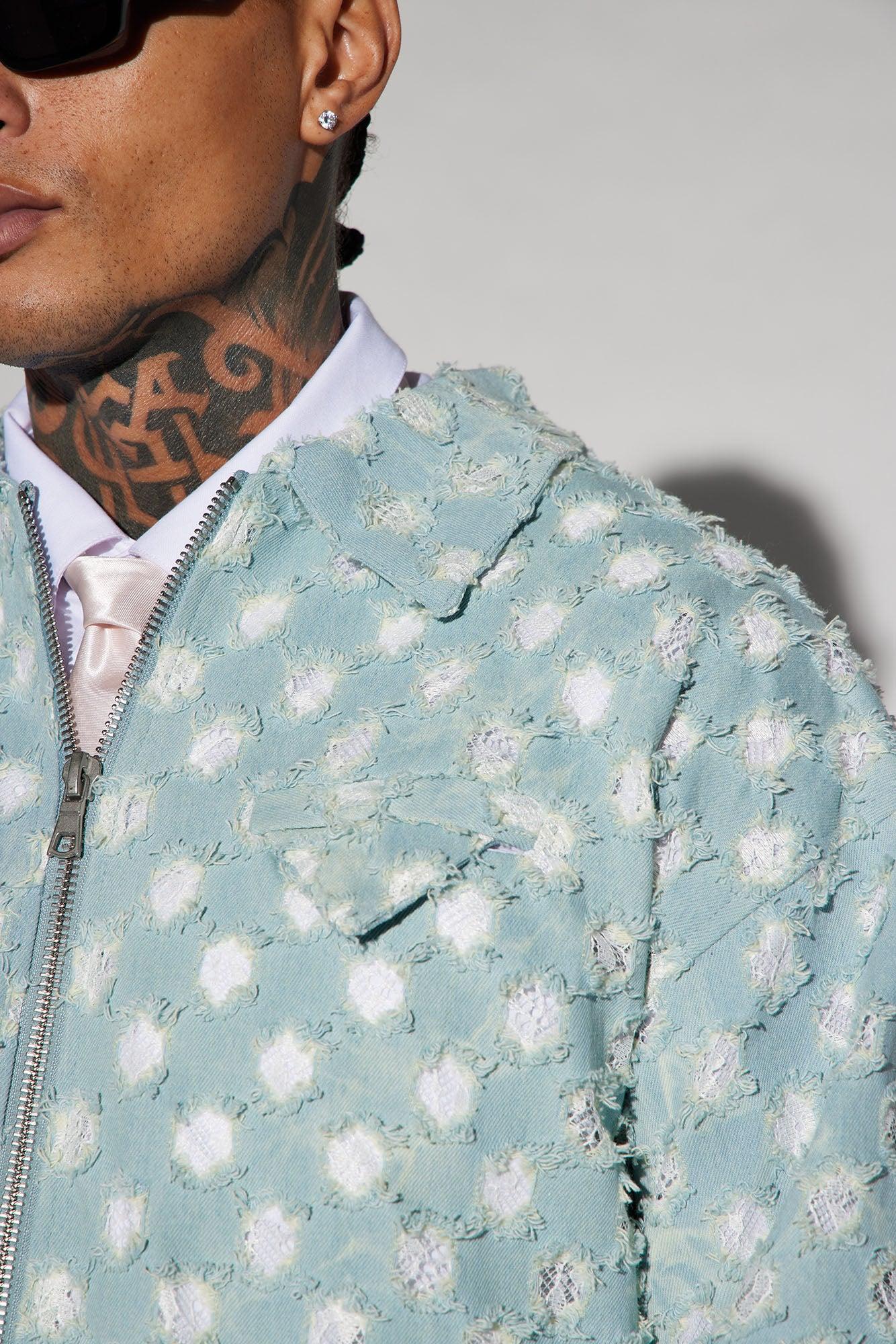 Available In Light Blue. Fold Down Collar Zipper Closure Side Hand Pockets Pair With "Bravo Carpenter Pants" Or Bravo Basketball Shorts Disclaimer: Due To The Distressing Process, & Wash Process, Each Garment Is Unique. Shell: 85% Cotton 15% Polyester Lining: 100% Cotton Imported California Proposition 65 WARNING: Cancer and Reproductive Harm - www.P65Warnings.ca.gov.