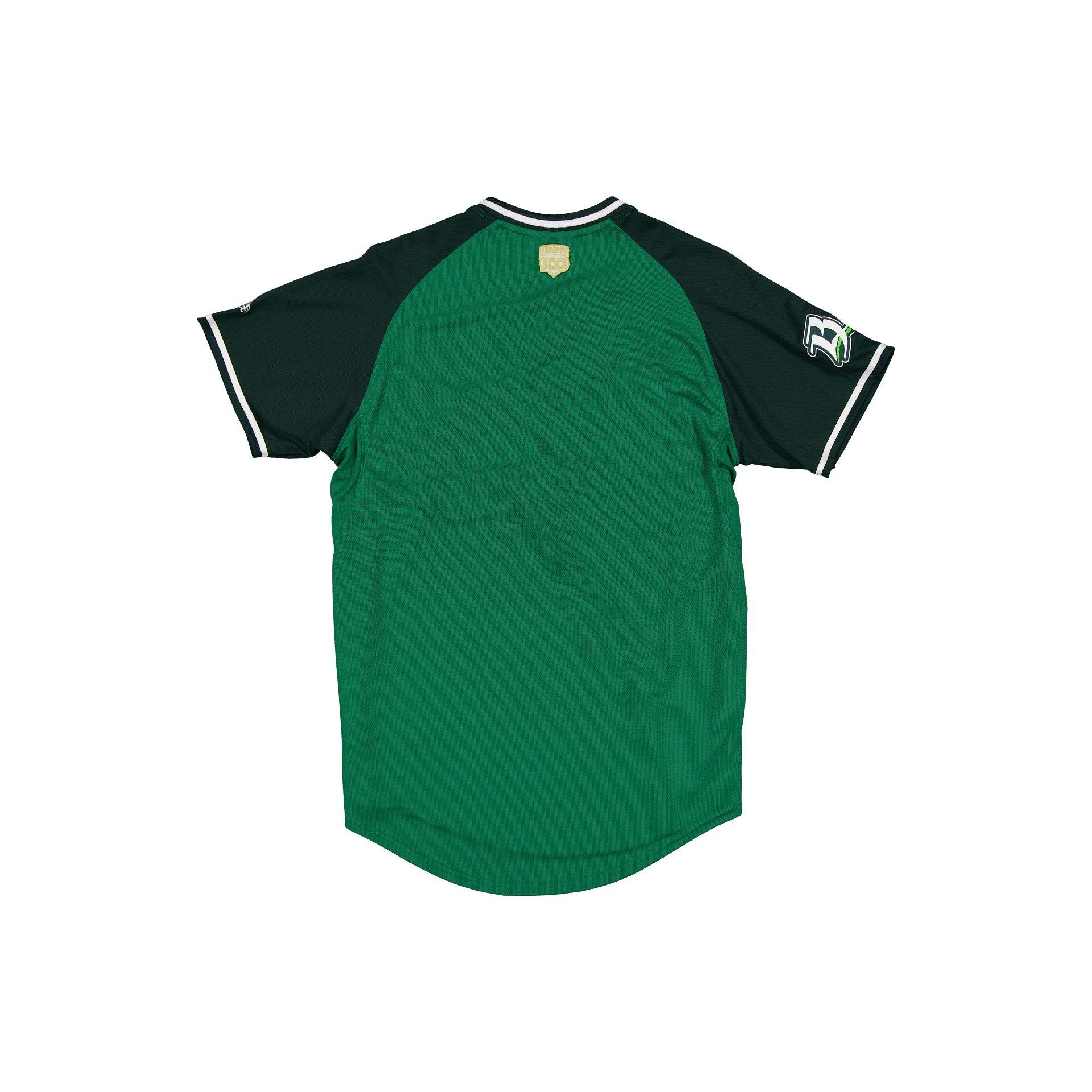 The Bravos de León LMB 100th Anniversary Away Jersey features an embroidered Bravos home name at the chest with a New Era Official Merchandise patch at the front hemline, a team logo at the right sleeve, and a LMB 100th Anniversary logo at the rear.Fabric: 100% Polyester
