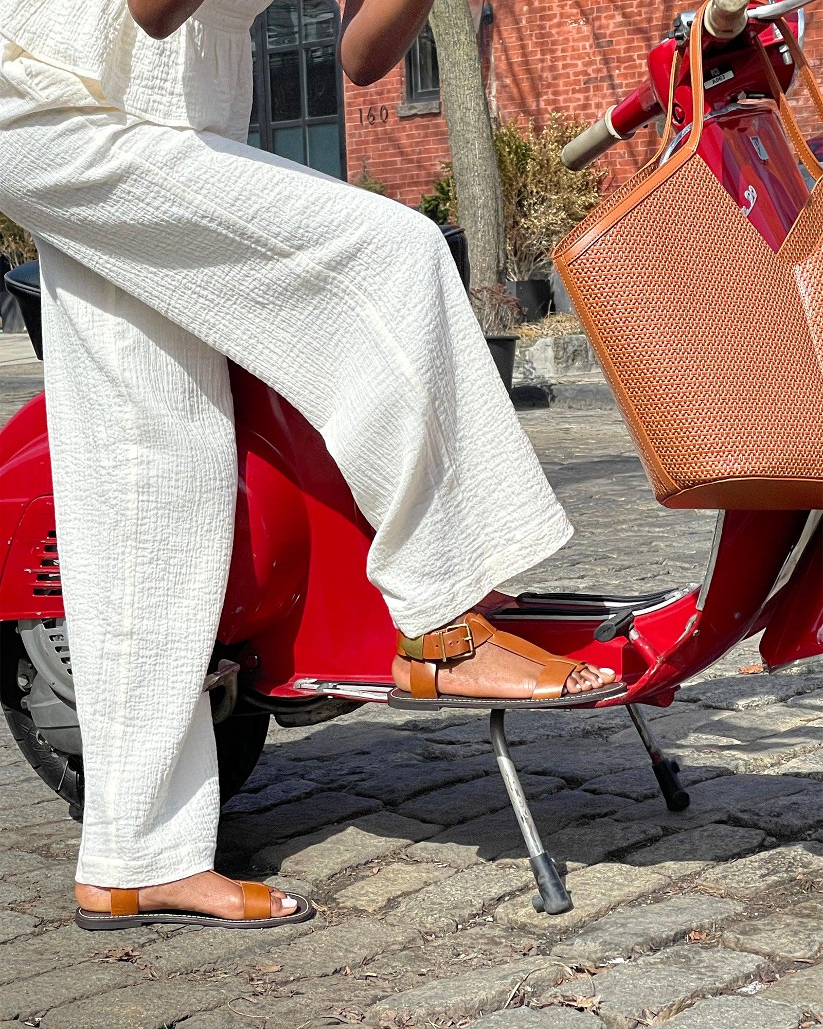 Experience style and comfort with the BRAZINN flat sandal. The secure ankle strap and strappy design offer both stability and a fashionable look. Enjoy the perfect balance of practicality and elegance. .5 inch heel height Leather upper material Synthetic lining Synthetic sock Synthetic sole Imported