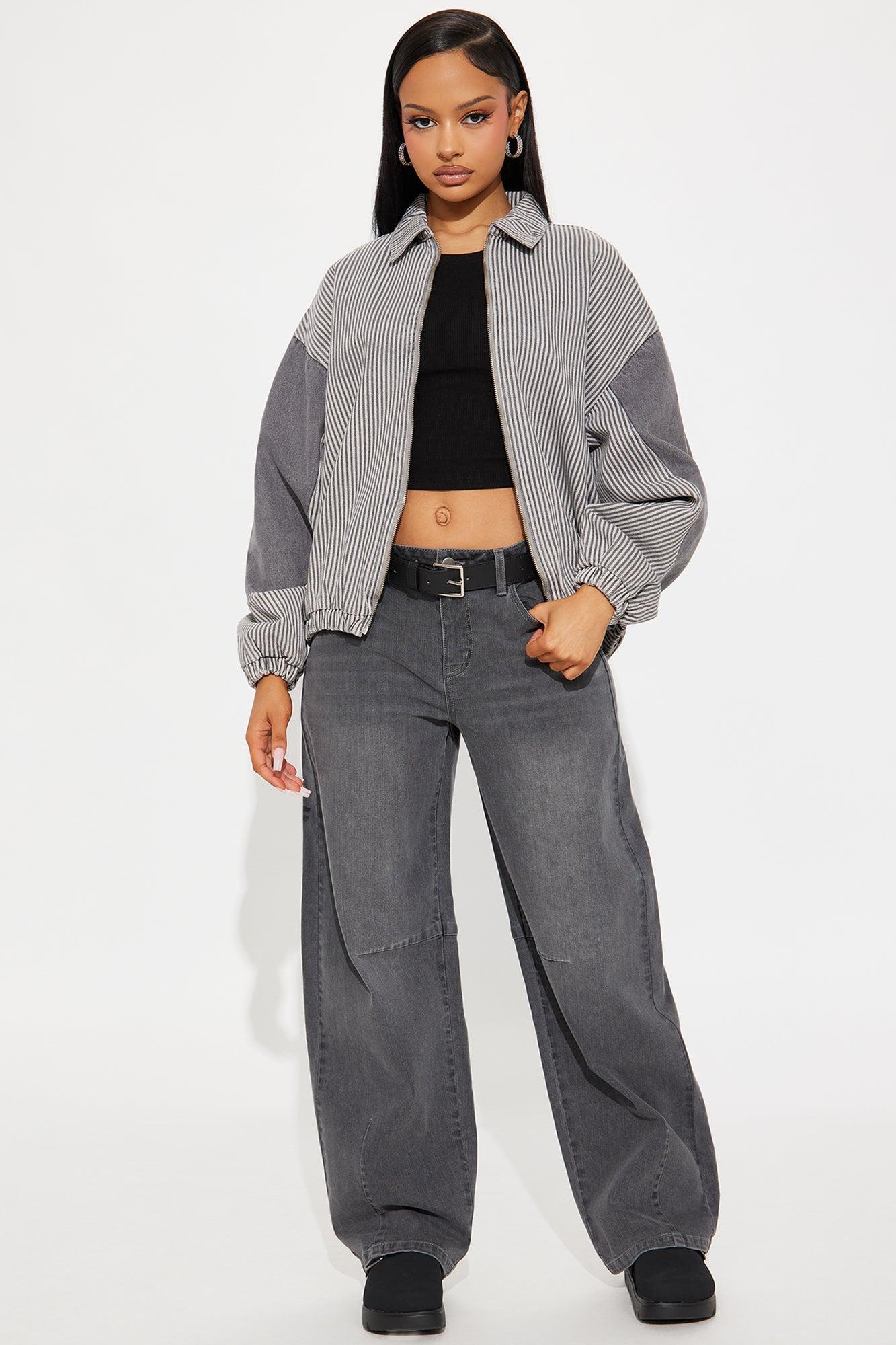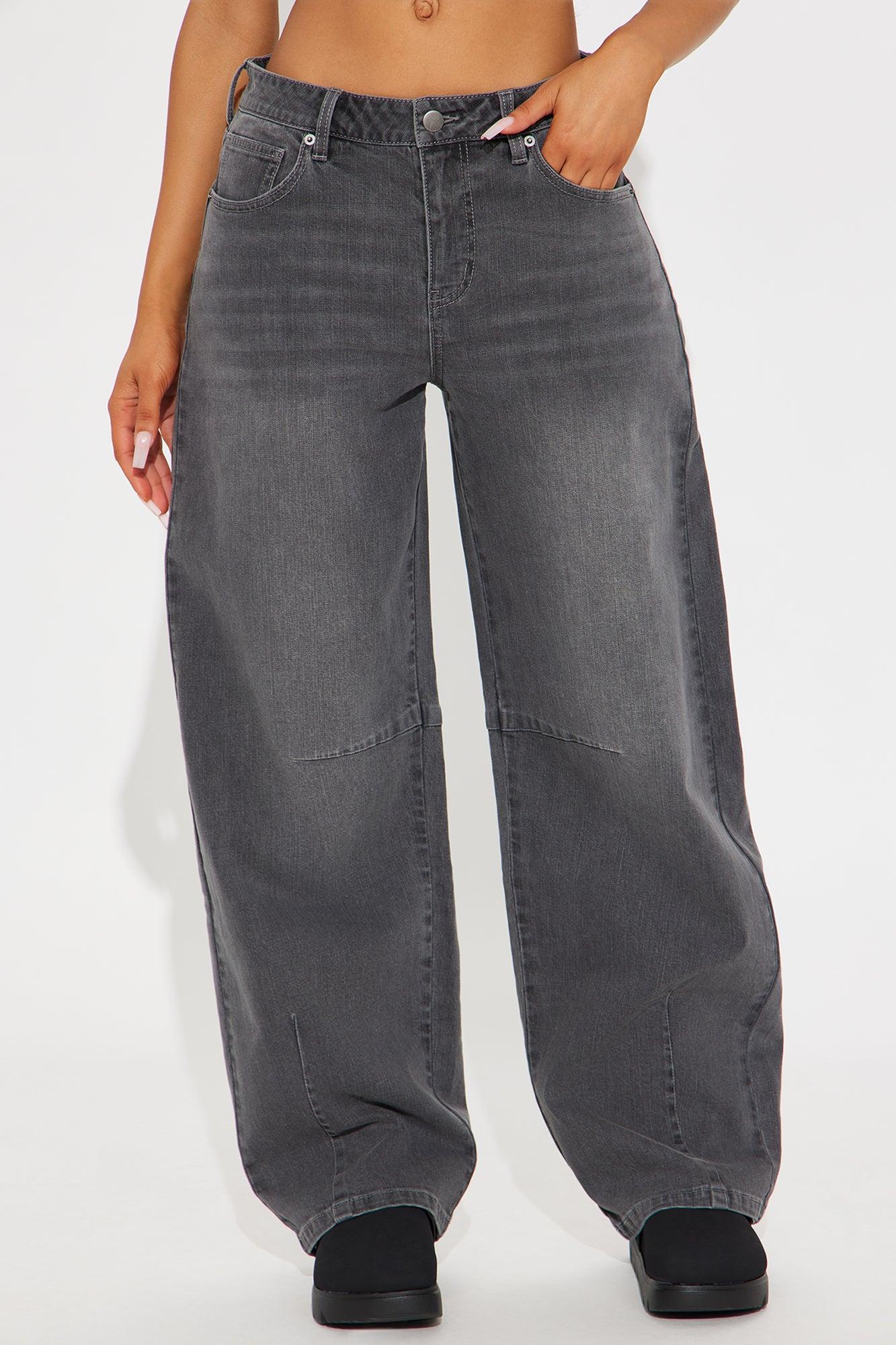 Break It Off Barrel Leg Jeans - Dark Grey Female