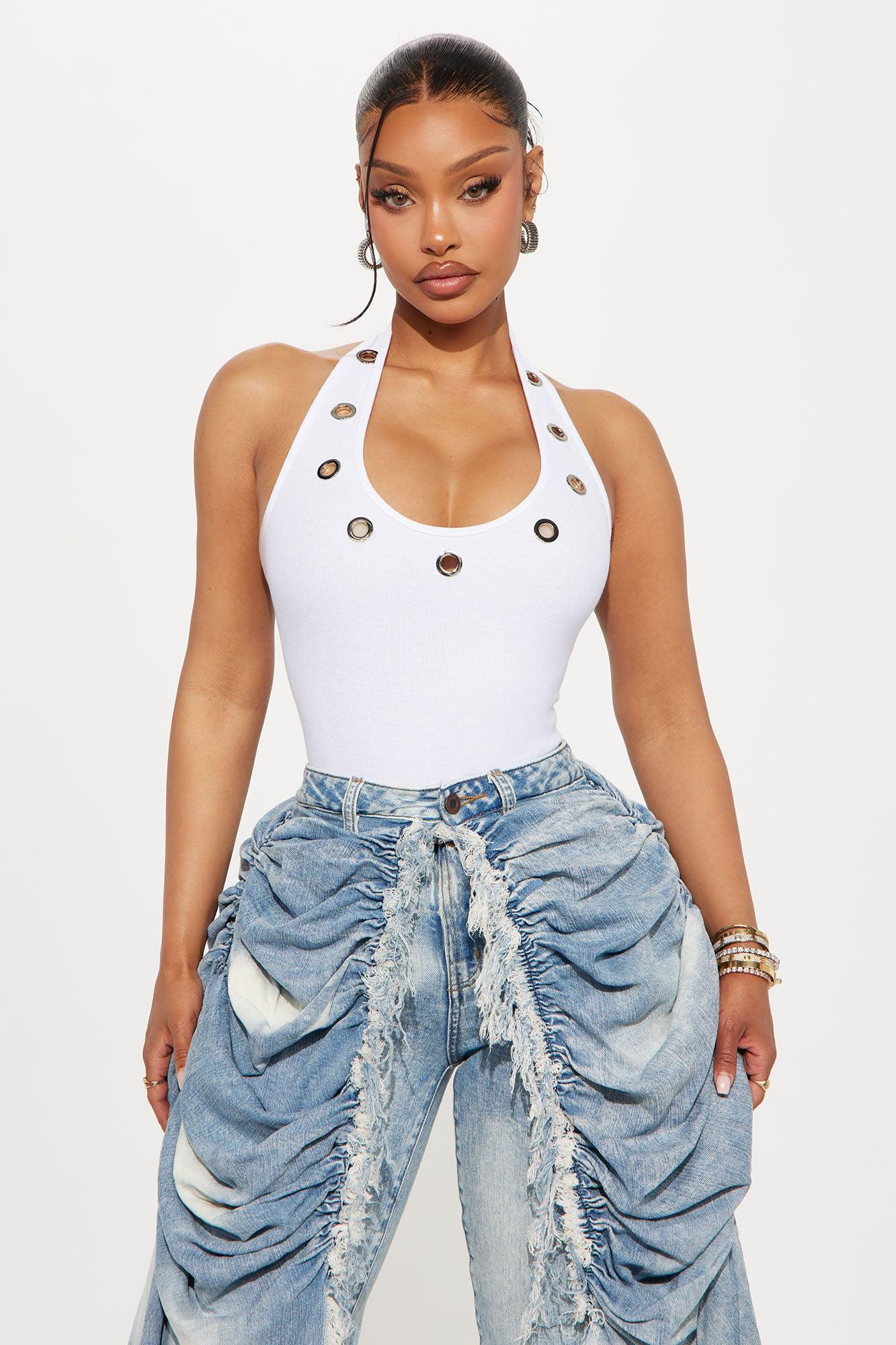Break The Ice Ribbed Halter Bodysuit - Off White