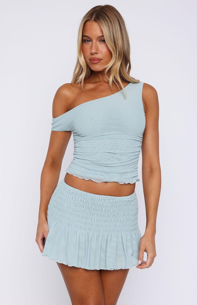The simplicity of sets made elevated. Welcome the Break The Limits Shirred Mini Skirt Powder Blue. Features shirred detailing on waist and stretch fabrication for an easy slip on and off. Complete the look with the matching Break The Limits Top in Powder Blue for a fit we love! 95% Nylon 5% Spandex Sophie is 167cm & wears an XS