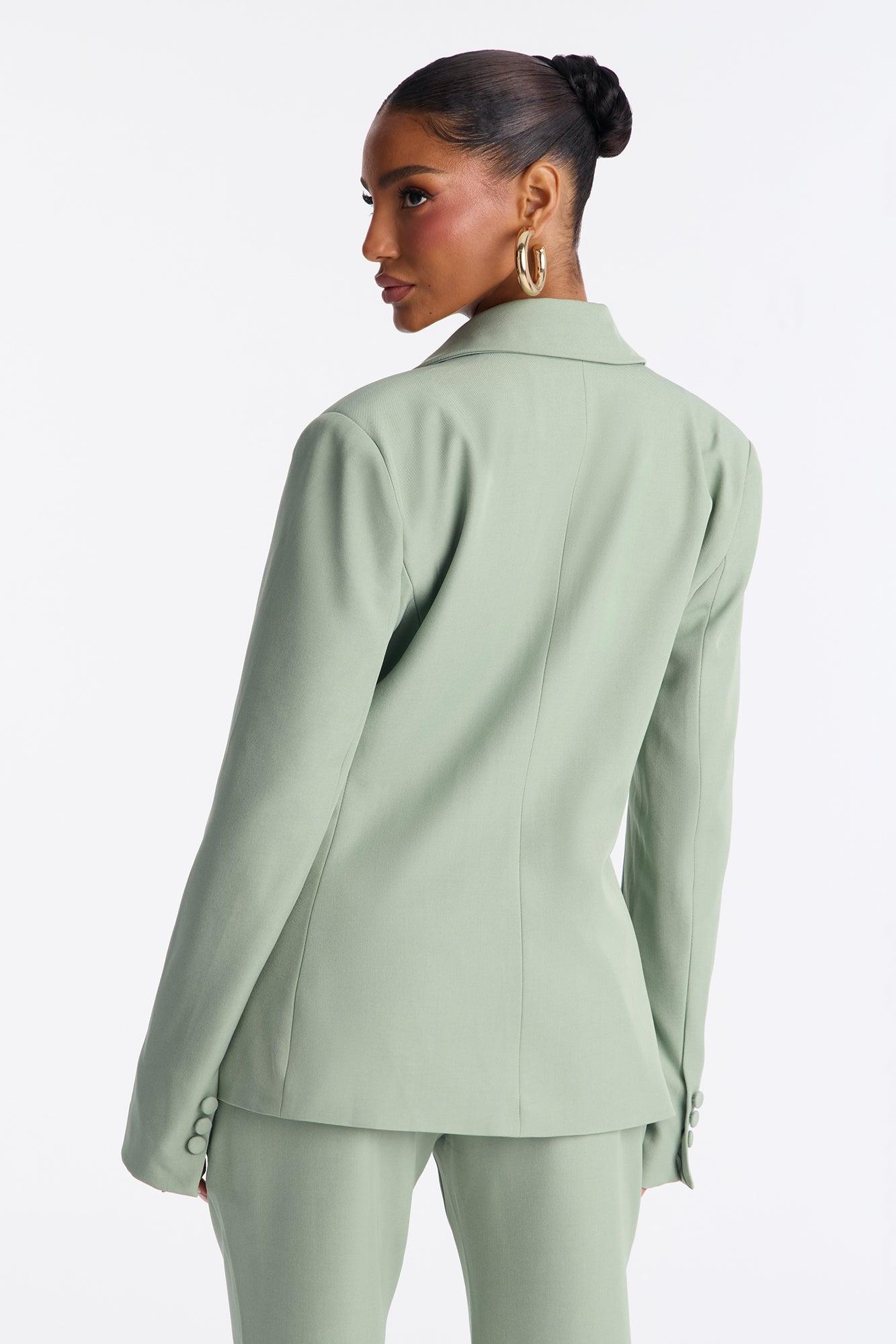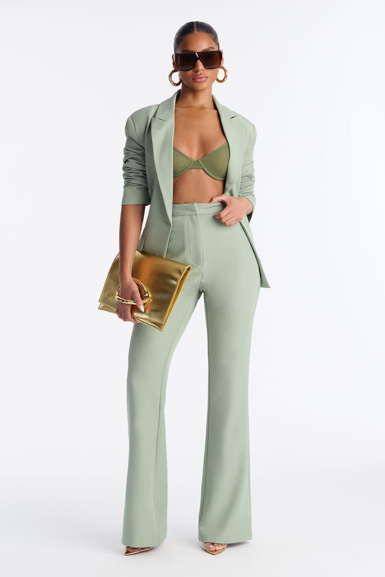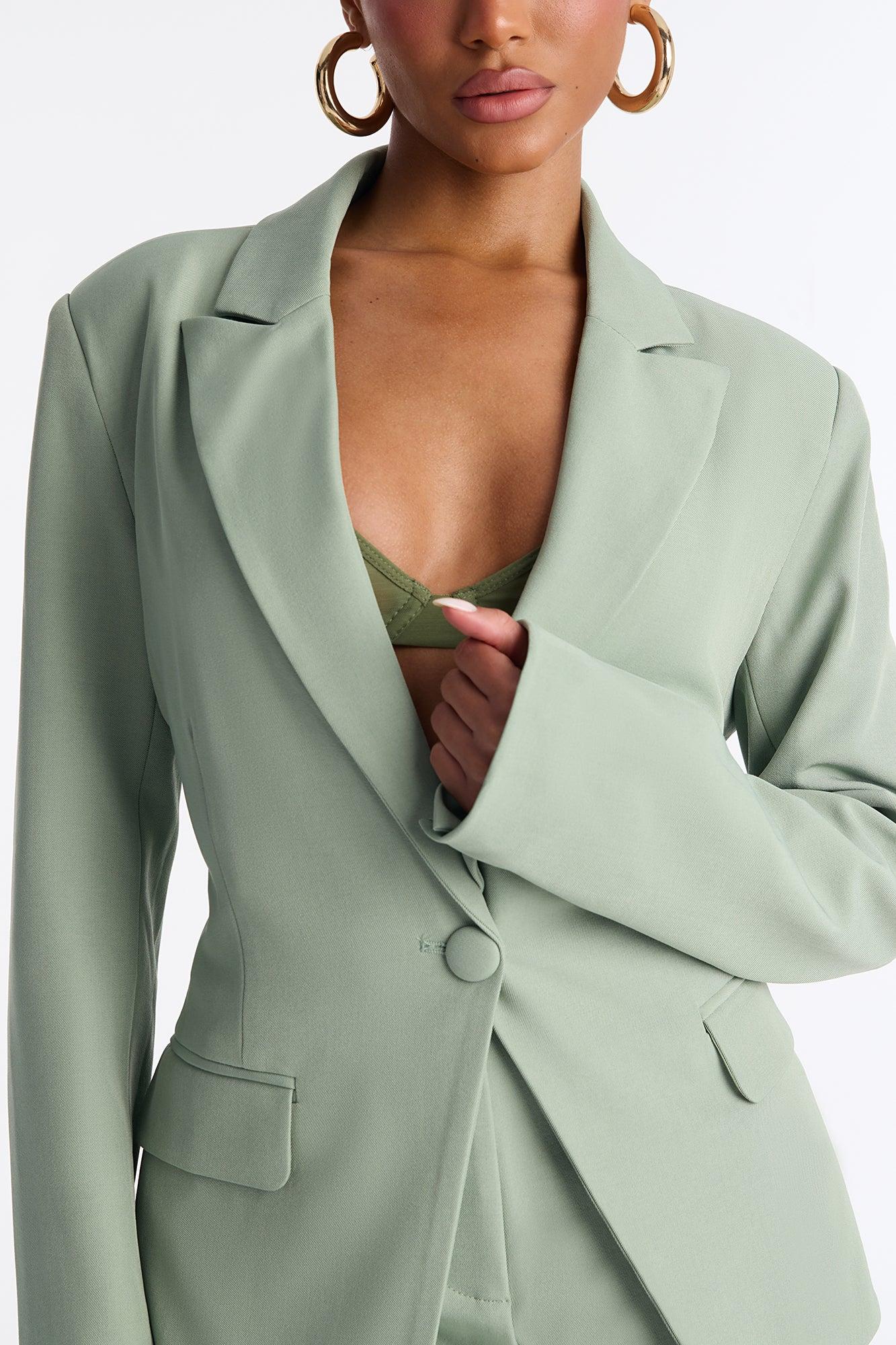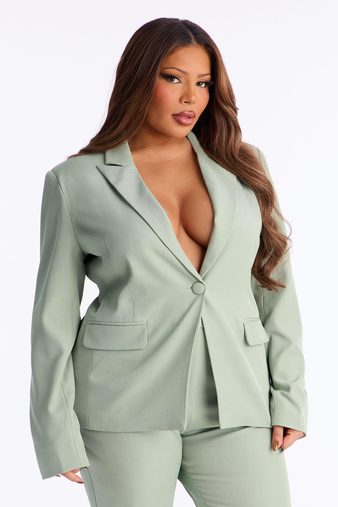 Available In Black, Chartreuse, Chestnut, Chocolate, Cream, Grey, Herb, Navy, Pink, Raspberry, Red, Royal And Slate Blue. Blazer Lapel Collar Long Sleeve Button Closure Pockets Fully Lined Pair With "Breaking Even Flare Trouser" Shell: 96% Polyester 4% Spandex Lining: 100% Polyester Imported