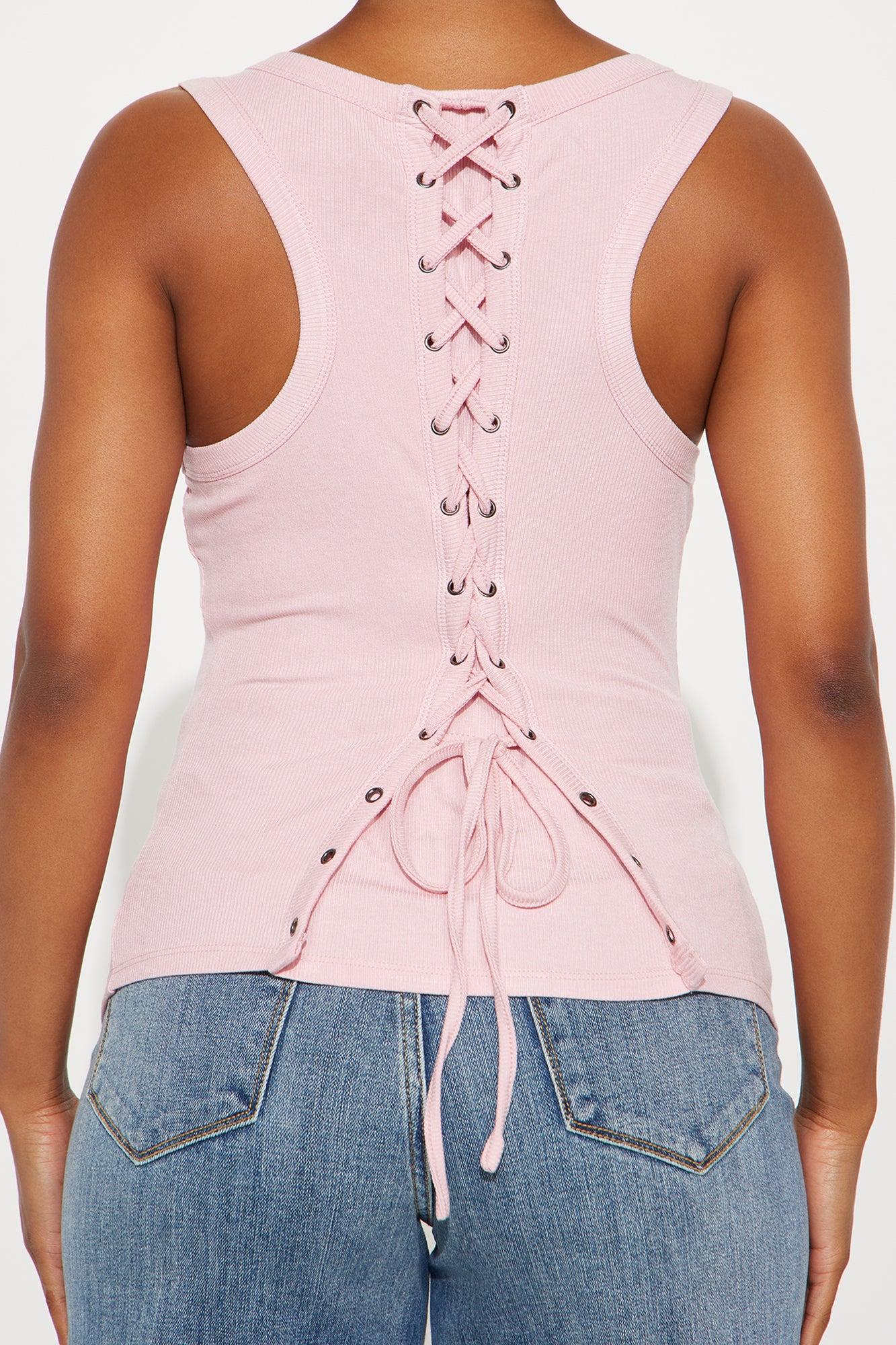 Bree Lace Up Ribbed Tank Top - Pink Female