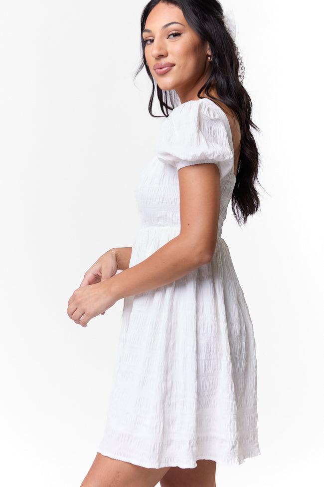Textured Square Neck Mini Dress Ivory