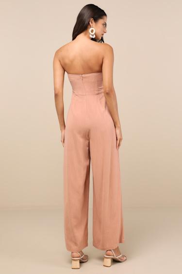 Hot days are on their way, but you'll be more than prepared when you have a cuter and comfortable look like the Lulus Breezy Essential Light Brown Linen Wide-Leg Jumpsuit! Lightweight, linen-blend woven fabric shapes this summer-ready jumpsuit that features a seamed strapless bodice (with hidden no-slip strips) and a sleek straight neckline. The high, fitted waist sits atop trendy wide-leg pants with pleated details and ankle-length hems. Hidden back zipper/clasp.