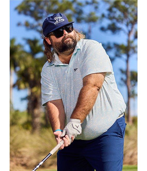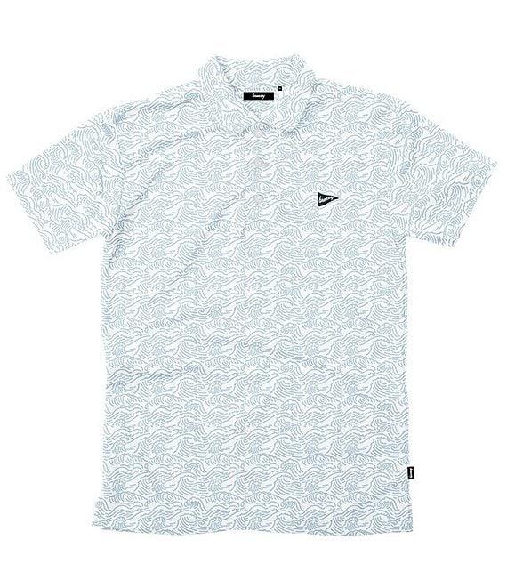From Breezy Golf, this polo shirt features: Allover print Self-fabric collar with a firm structure to keep its shape and integrity Short sleeves Partial-button placket UPF 50 sun protection Moisture-wicking with antimicrobial properties Four-way stretch fabric Polyester/spandex Machine wash/tumble dry Imported.