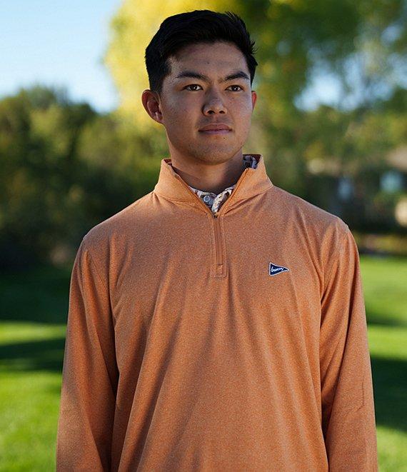From Breezy, this polo features: Quarter zip mock neckline Long sleeves Graphic logo on the left side of chest Straight hem Pullover construction Four way stretch material Moisture wicking Anti Lobster UPF 50+ Sun Protection Self-fabric collar with a firm structure to keep its shape and integrity Polyester/spandex Machine wash/tumble dry low Imported.