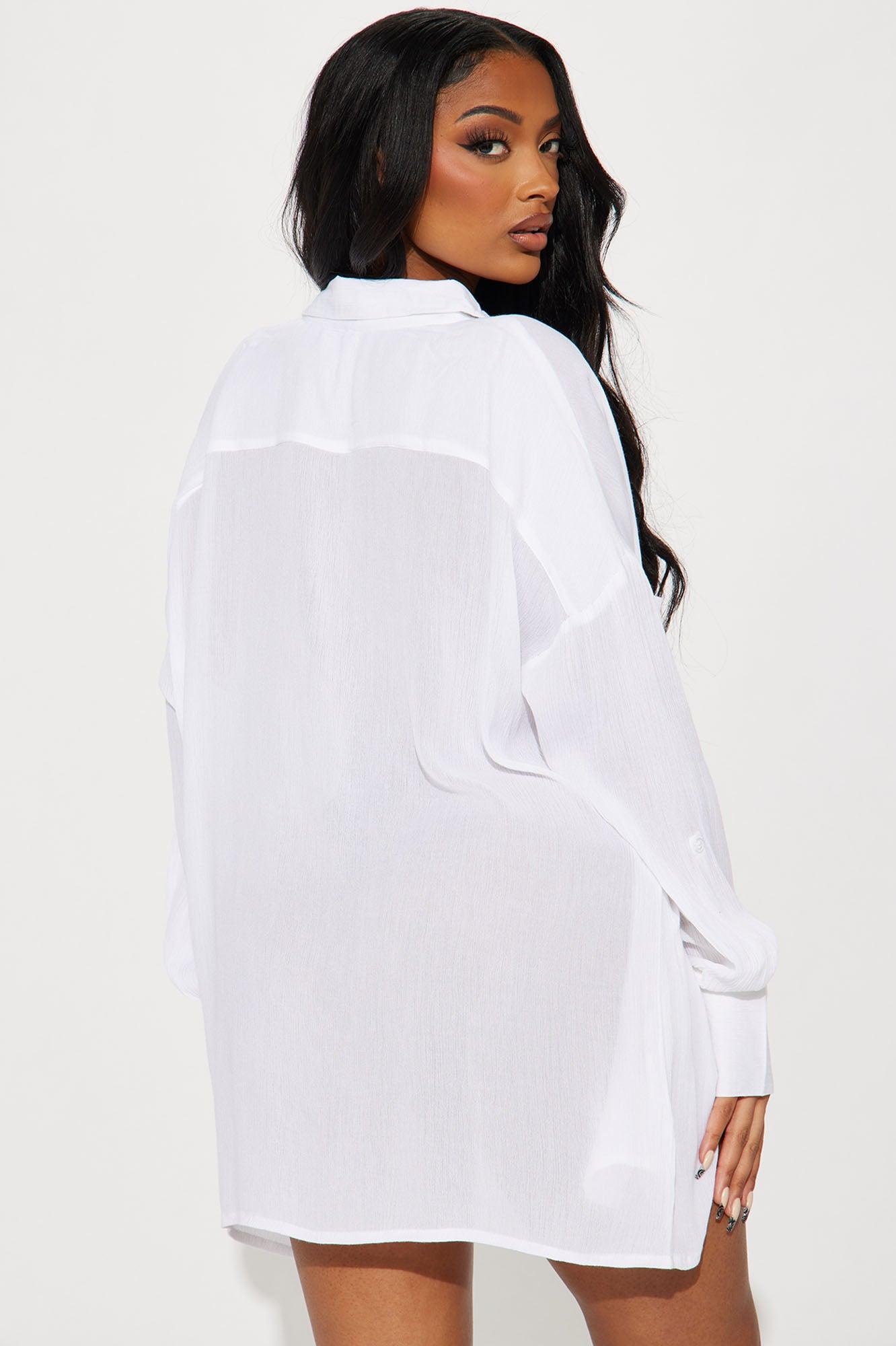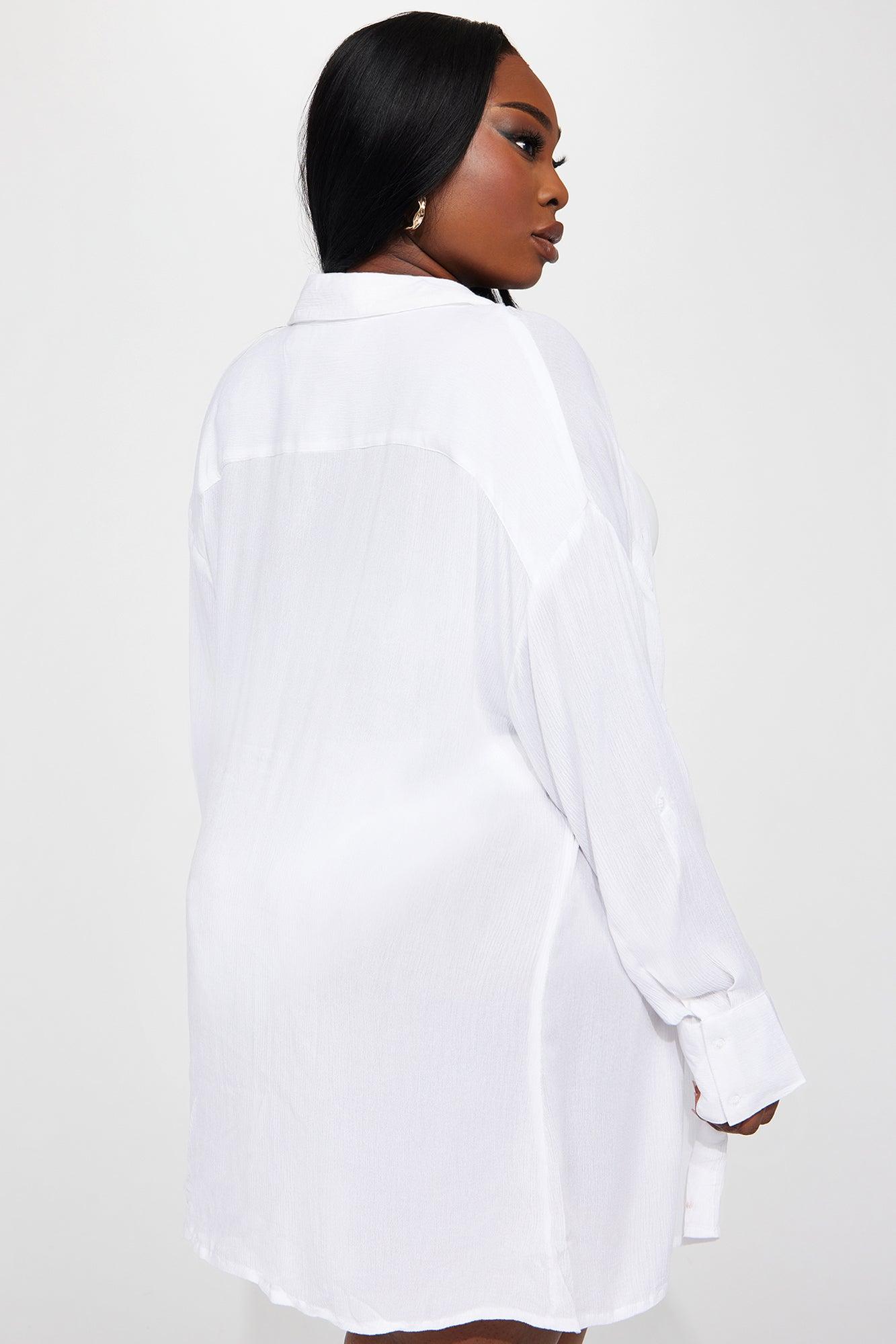 Breezy Nights Linen Pocket Cover Up Shirt - White