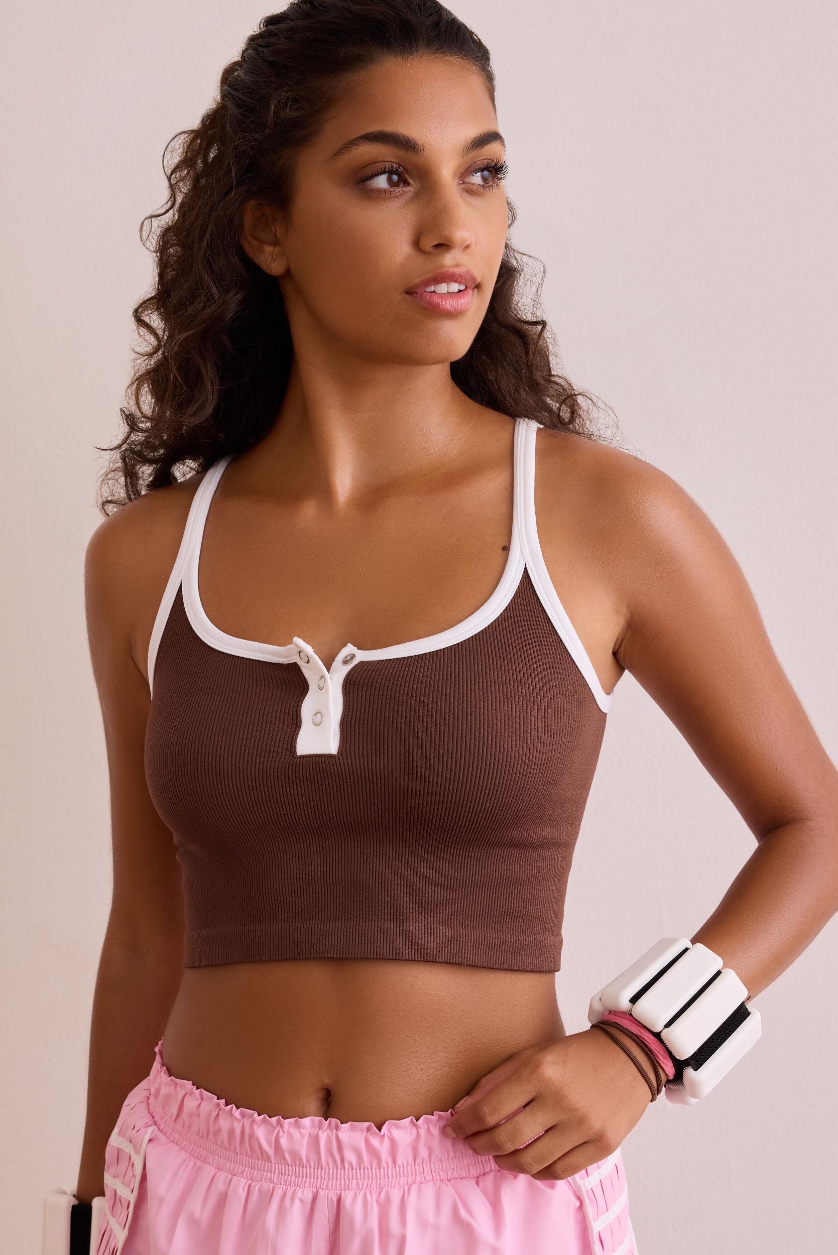 Feel secure and confident in this ribbed tank featuring a faux double neckline. The soft material offers an effortless stretch, while the henley button up makes it adjustable.