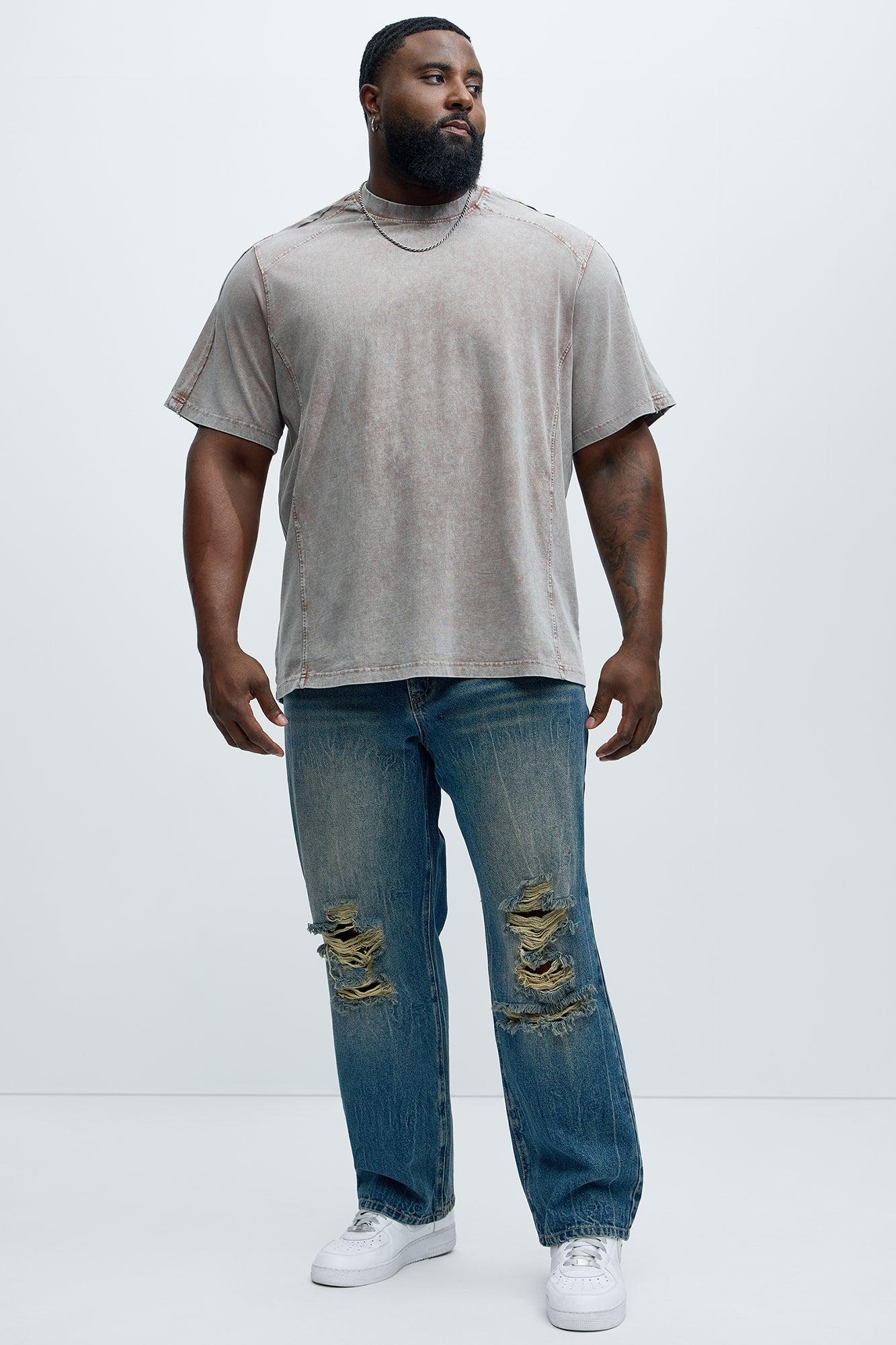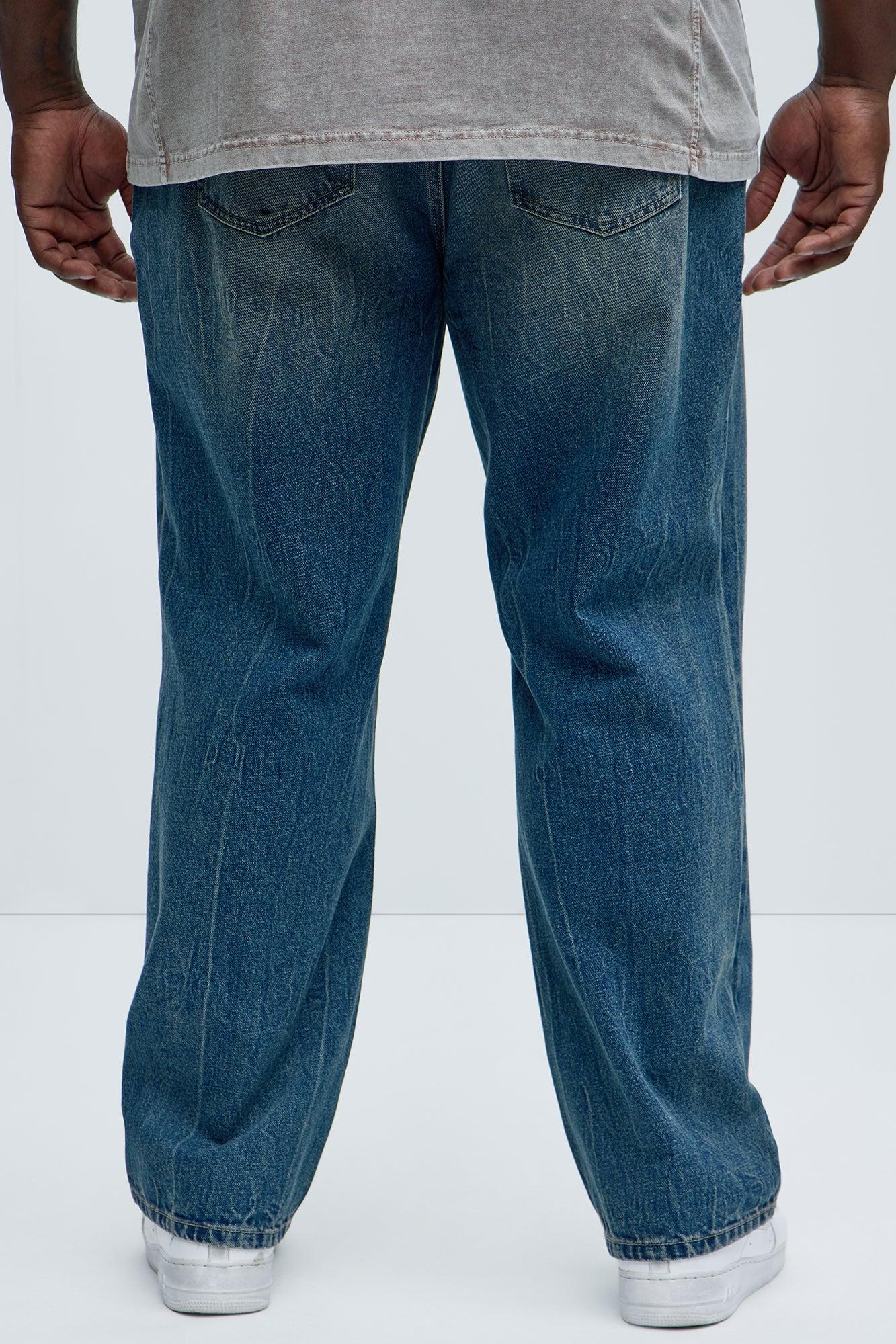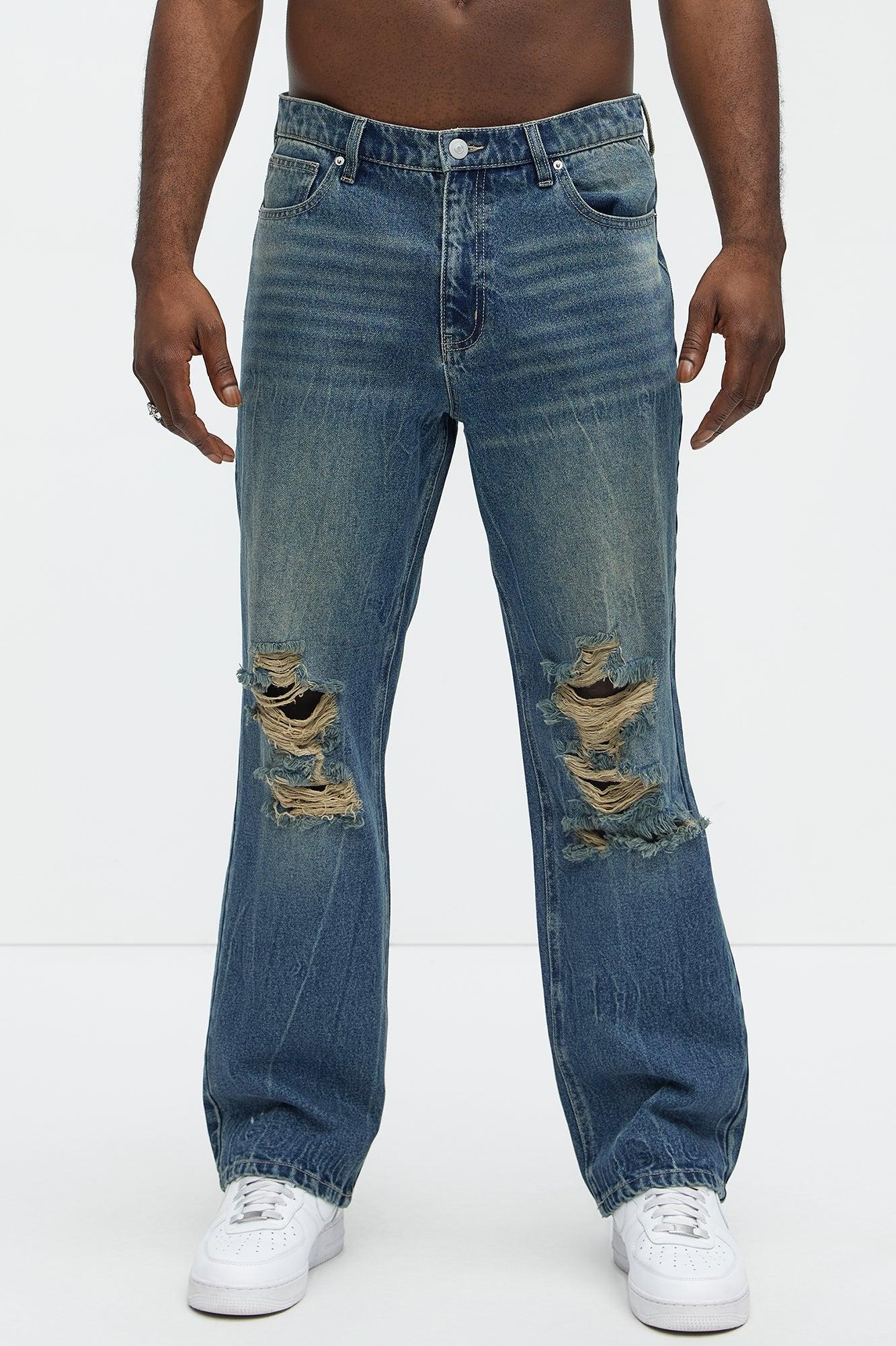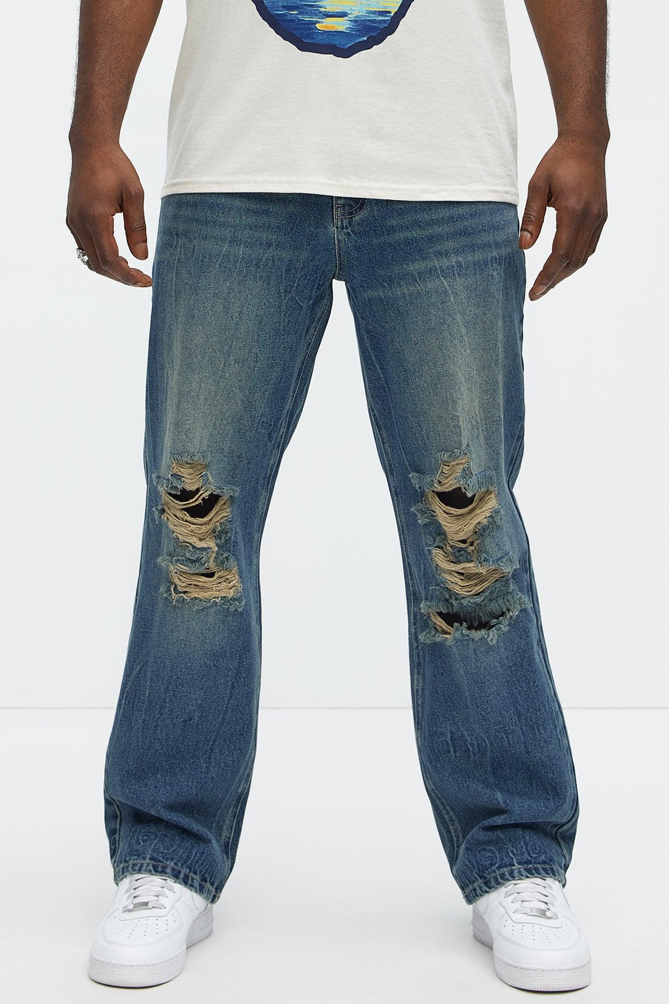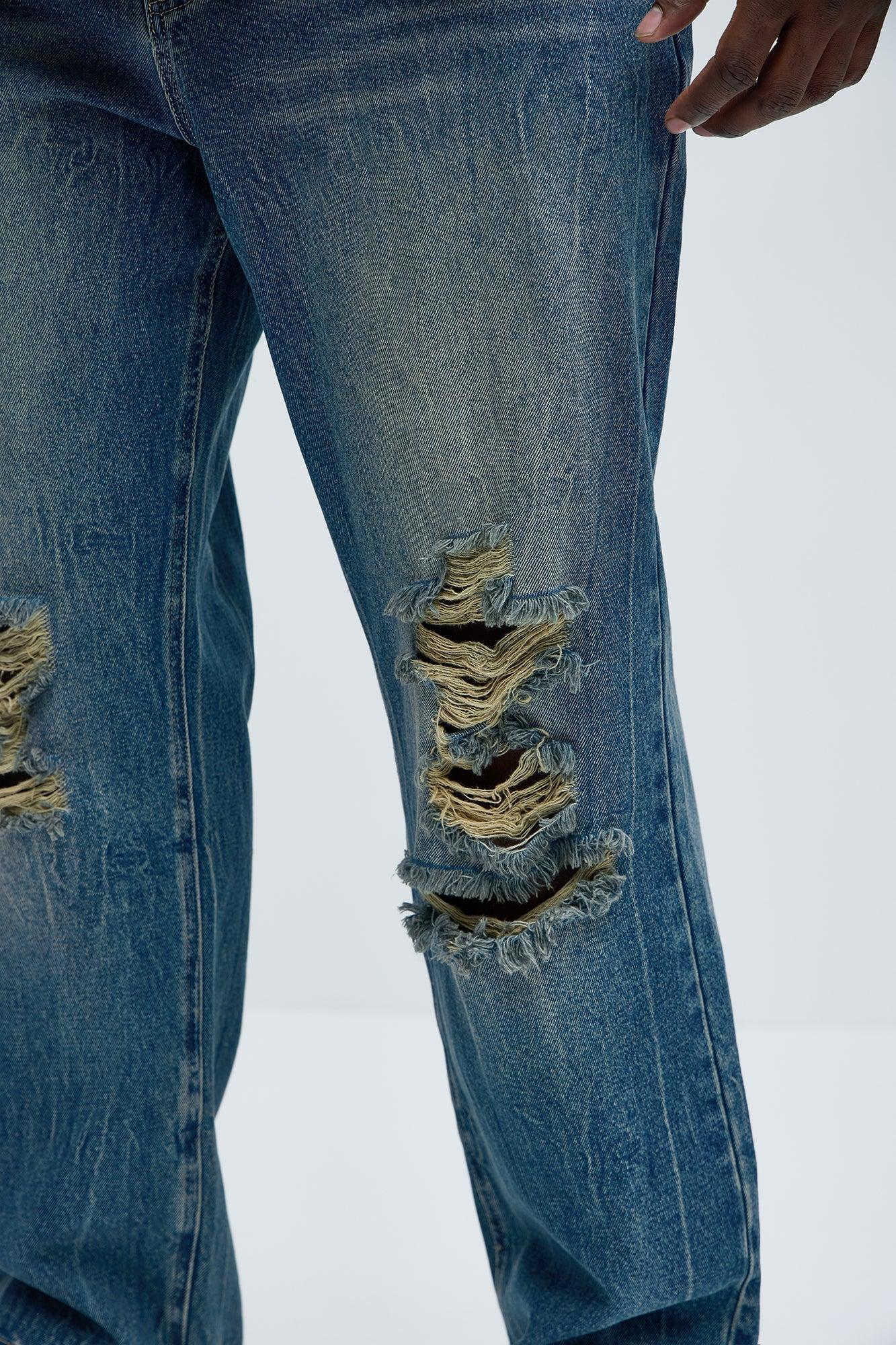 Brentonwood Distressed Straight Jeans - Vintage Blue Wash