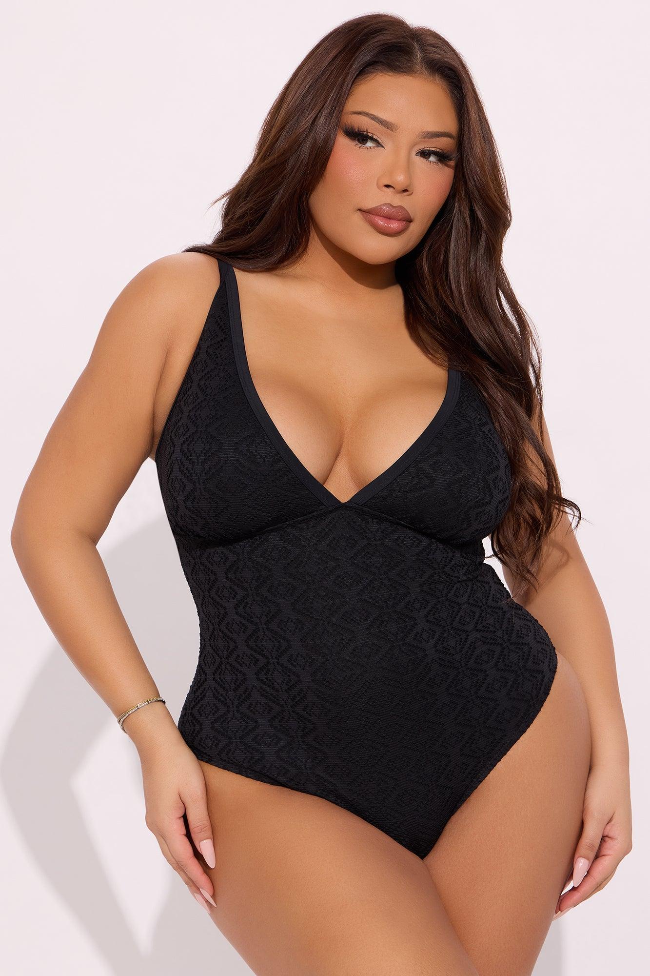 Brianna Lace V Neck 1 Piece Swimsuit - Black