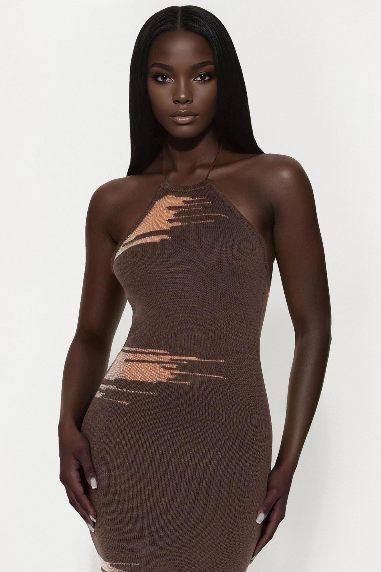 Brianna Sheer Maxi Dress - Brown