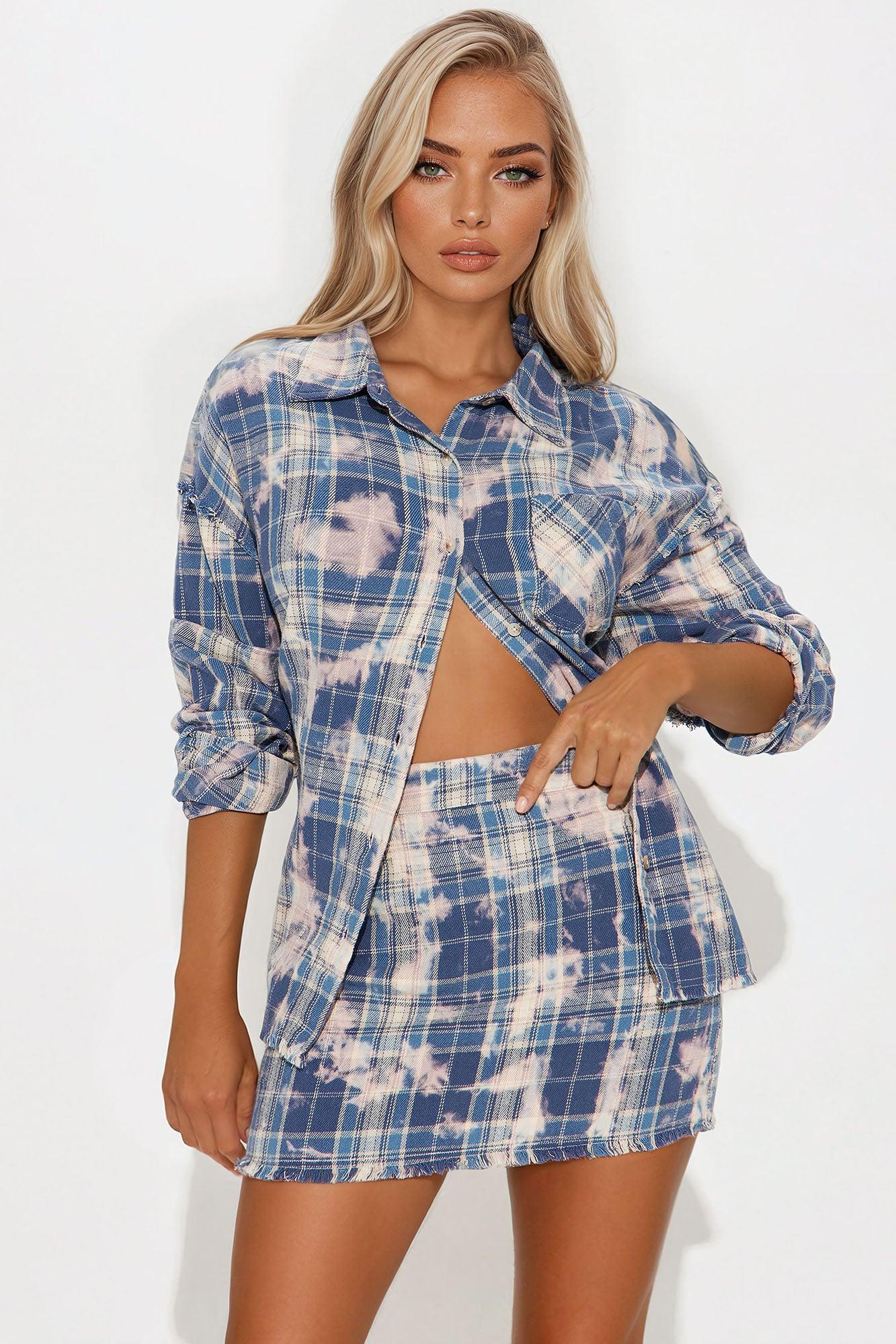 Brianne Plaid Skirt Set - Blue/combo