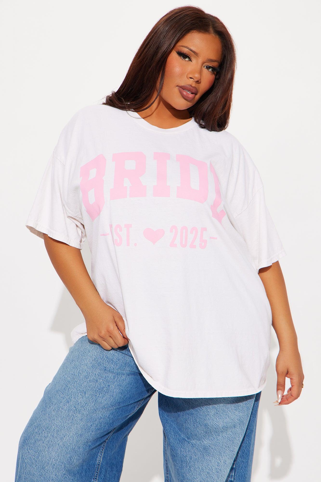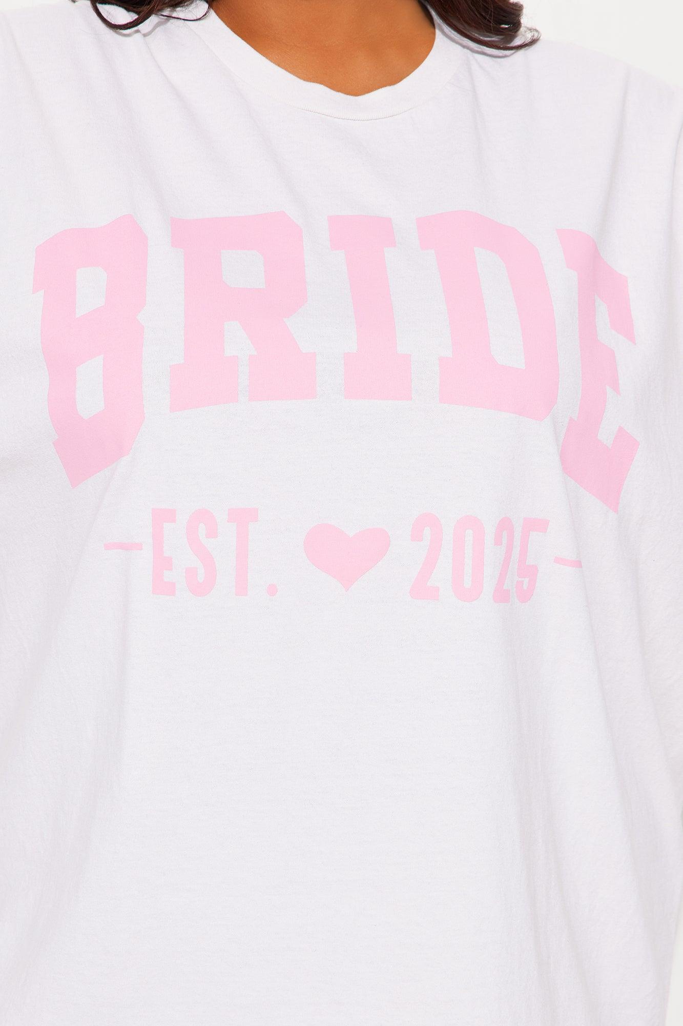 Bride To Be Washed Oversized Tee - White/Pink