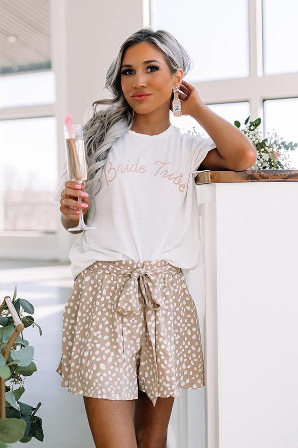 Show off your status in the bride tribe with this trendy white shift tee featuring lightweight cotton-blend material with cute lettering on the front, a rounded neckline, short sleeves, and a relaxed silhouette that ends in a straight hemline! Measurements S : Bust 40", Hip 40", Length 26", Sleeve Length 5.5", Waist 40". M : Bust 42", Hip 42", Length 26.5", Sleeve Length 6", Waist 42". L : Bust 44", Hip 44", Length 27.5", Sleeve Length 6.5", Waist 44".