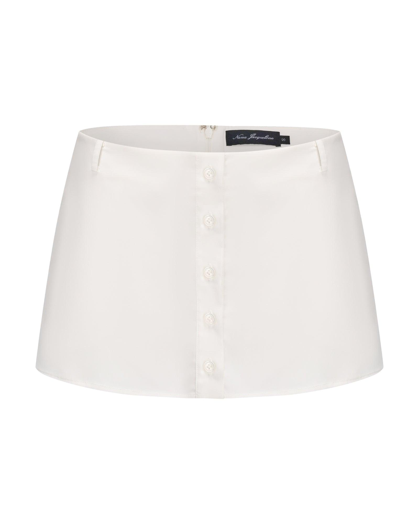 The Bridget Skirt offer the perfect blend of playful charm and tailored polish. Designed in a crisp white hue, this feminine skort features a front placket detail that mimics the look of a classic mini skirt, while cleverly concealing shorts underneath for all-day ease and confidence. A softly flared A-line silhouette flatters the figure, making it a versatile staple for both daytime outings and elevated edits. Features:Material: Crisp, lightly draped suiting fabric with a smooth handfeel, structured look.Fit: A-line silhouette with built-in shorts.Waistband: Natural mid-rise fit hugs the waist without constriction, creating a balanced, effortless shape.Closure: Single-breasted placket adds a retro-inspired finish while making it easy to slip on and off.Design: Belt loops and practical side pockets offer styling versatility and everyday functionality.Styling: Pair with a romantic blouse or cropped knit for a look that’s sweet, cute, and ready for anything.