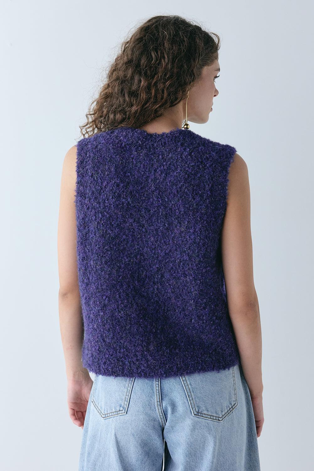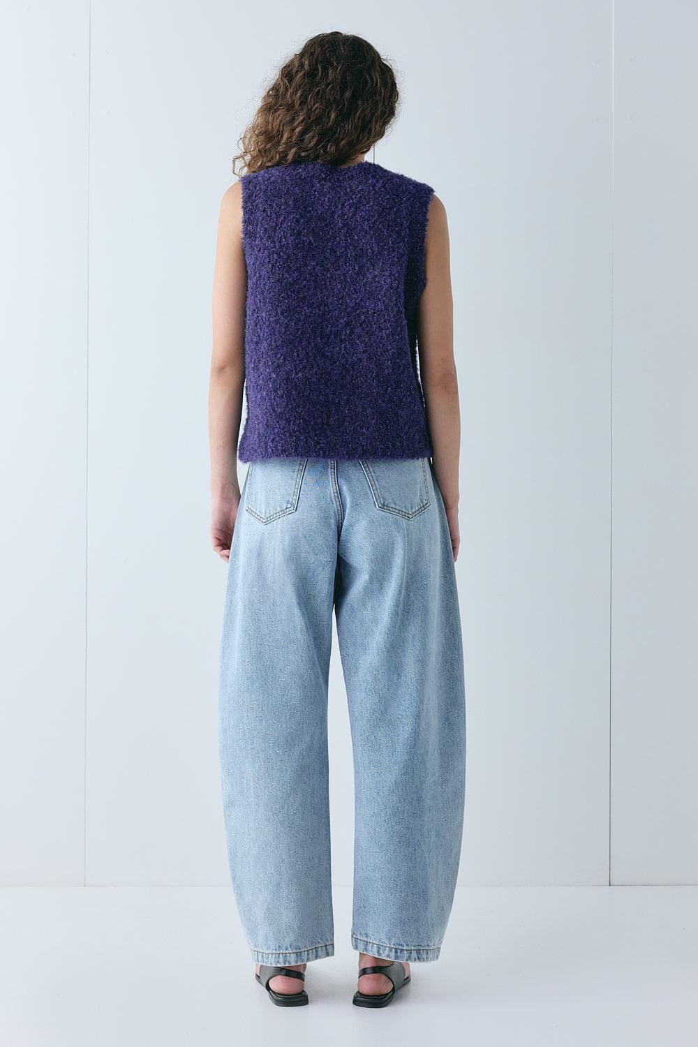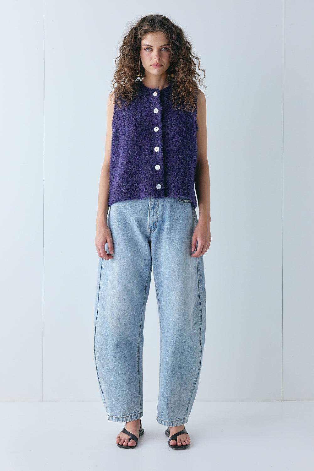 Knitted in an indigo wool blend, the Bridgette Vest is soft with just the right amount of stretch. Shell buttons trace the centre front, adding texture to its relaxed fit. Layer it over a tee or wear it solo buttoned up - it's built for more than one season.