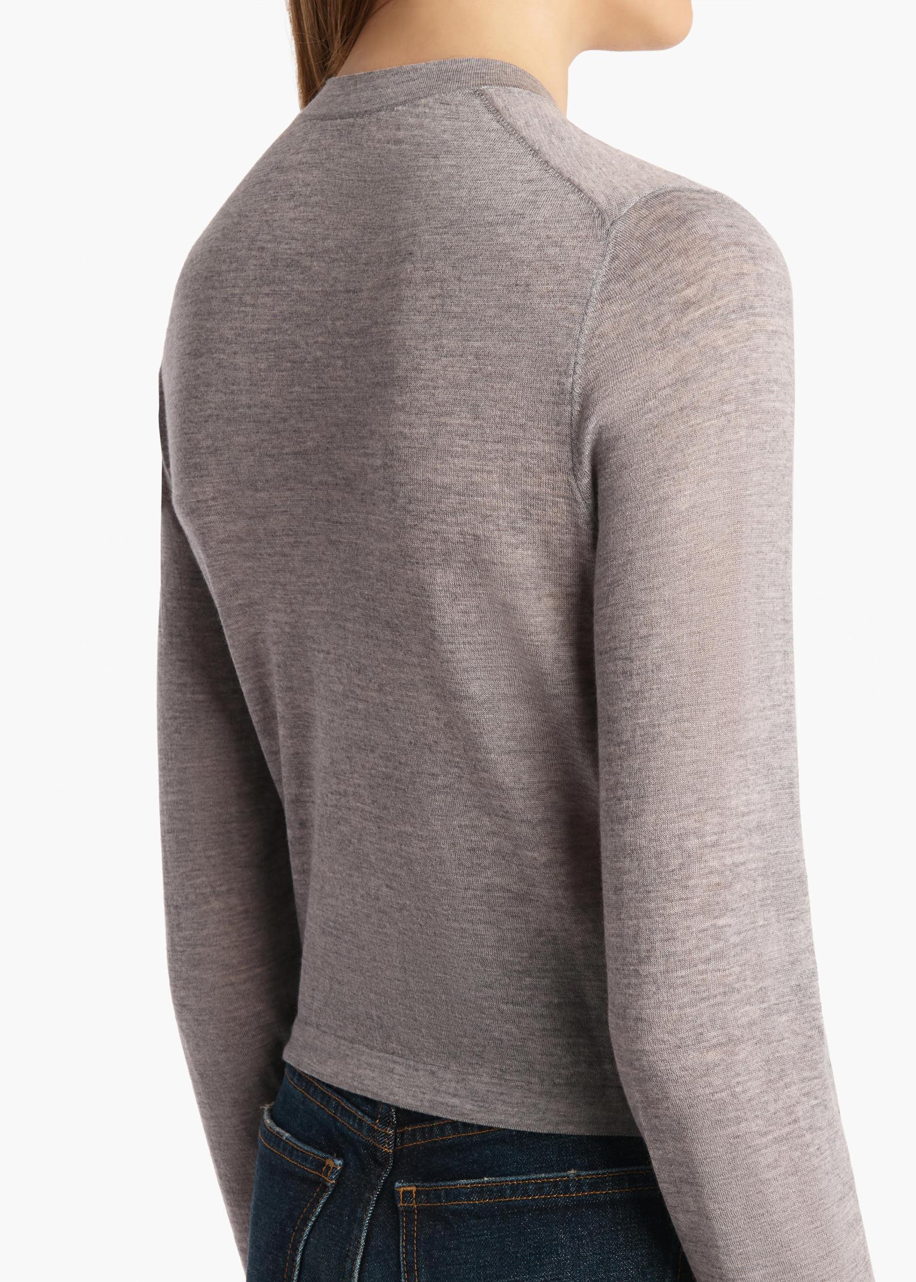 A study in simplicity made possible by especially fine Merino wool. Crewneck cardigan designed for a precise fit. With six tortoiseshell buttons.