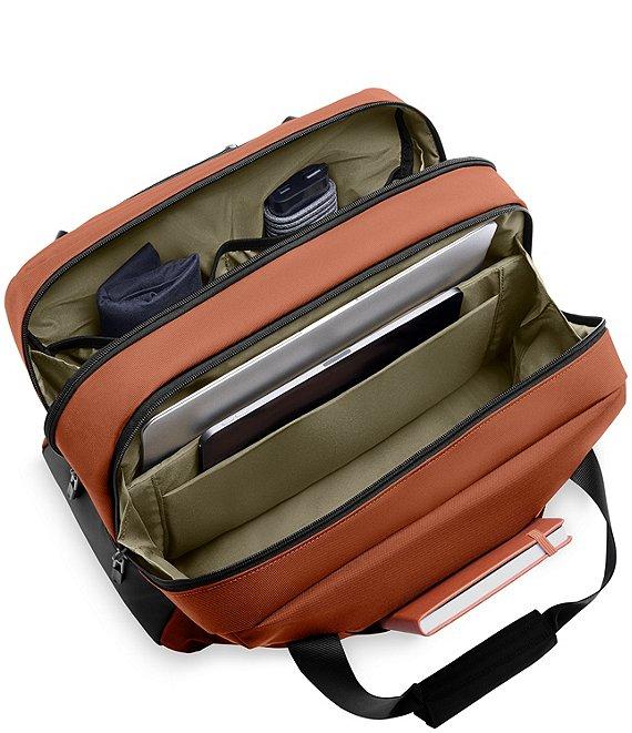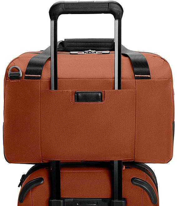 From Briggs & Riley, the ZDX Cabin Bag features: Tech compartment organizes and protects up to a 16" laptop SpeedThru pocket with RFID shielding provides easy access to travel essentials while securing your personal data Our signature orange lining visually informs you that the pocket is opened Hidden pocket in SpeedThru conceals a digital tracker to keep tabs on your bag Inner pockets make it easy to organize small essentials Removable shoulder strap provides an additional way to carry Elegant personalization allows you to make each piece your own Superior materials tested to the highest standards for a product that lasts a lifetime Our lifetime guarantee repairs all functional aspects of every bag we make so you can travel with confidence Stackable 2-in-1 transport with slip-through back strap that slides over any luggage handle Main compartment zipper pulls can be used with a cable lock to secure contents (lock not included) Hide-away id tag is an elegant, discreet feature that keeps your personal information concealed during travel Premium leather touchpoints and accents for a luxurious feel Approx. 10.75" x 17" x 9.5" Imported.