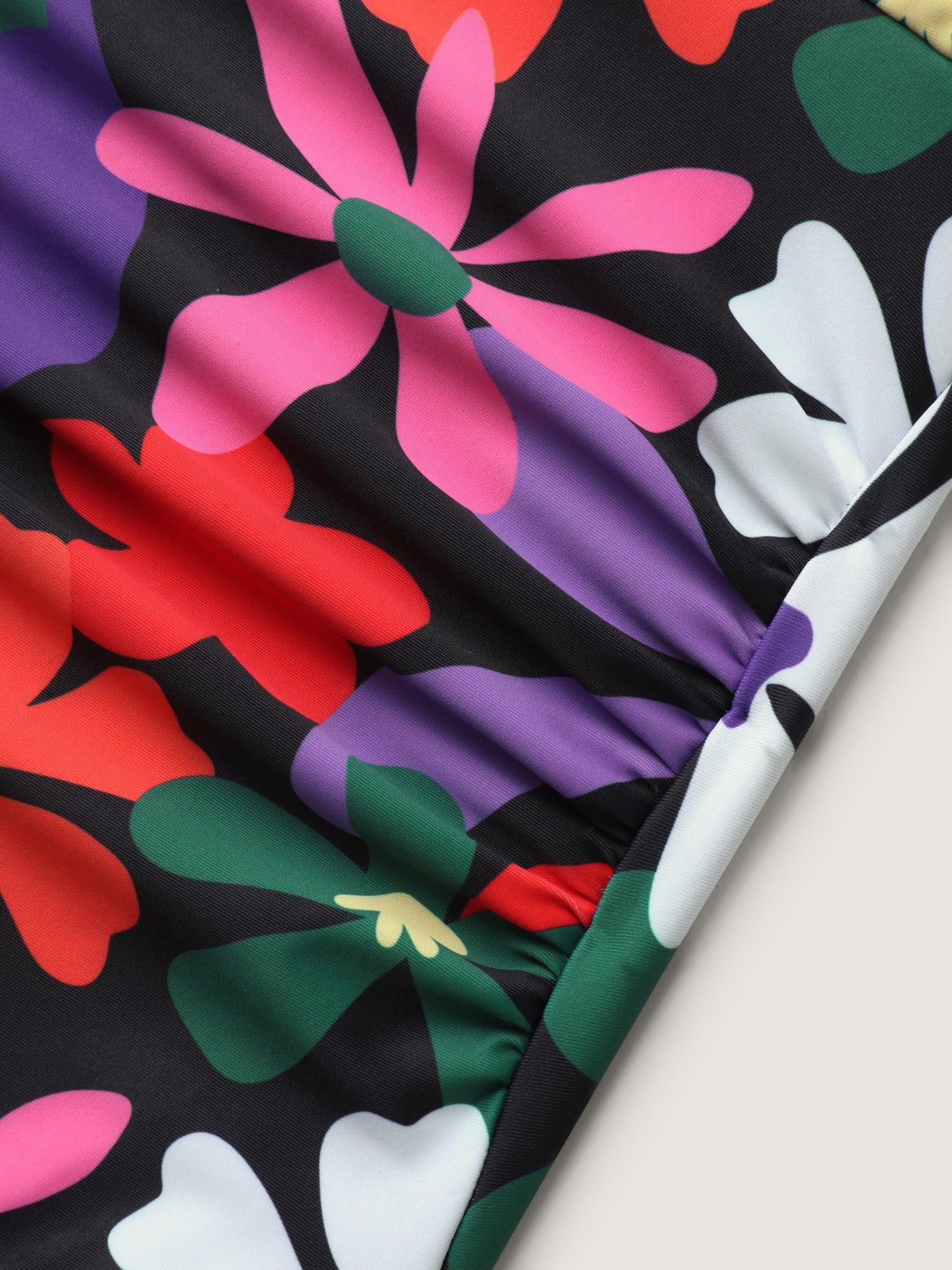 Bright Florals Pleated One-Piece Swimsuit Female