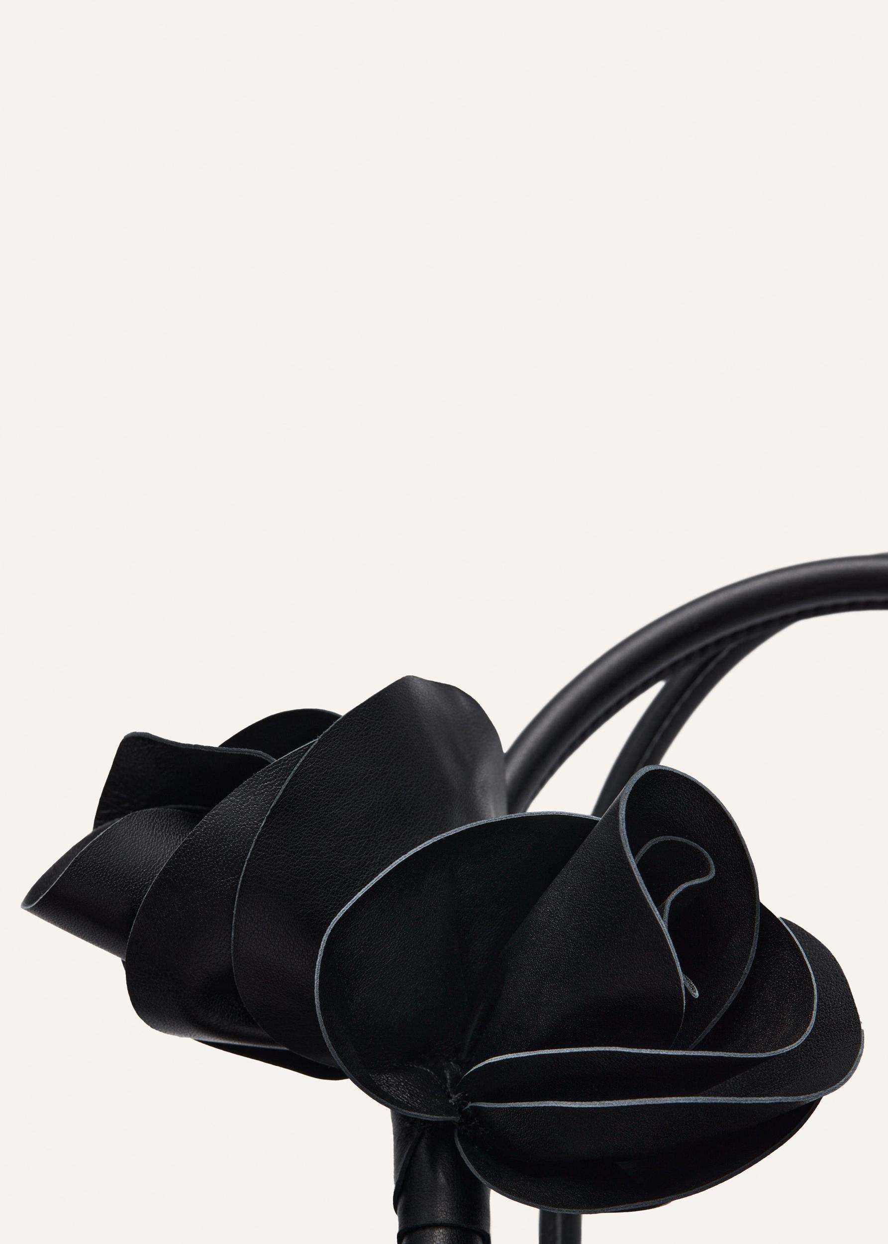 Introducing the Brigitte handbag. Inspired by the nostalgia of 90's while deeply rooted in Magda's family heritage. Its elegant silhouette, the roomy interior, two top handles and top zipper have been thoughtfully crafted in Italy. Adding a touch of on-brand dreaminess is the leather flower embellishment. Meticulously arranged and fixed onto the bag's handle. For an ideal finish curl the flower petals outward for a blooming rose effect on your bag.