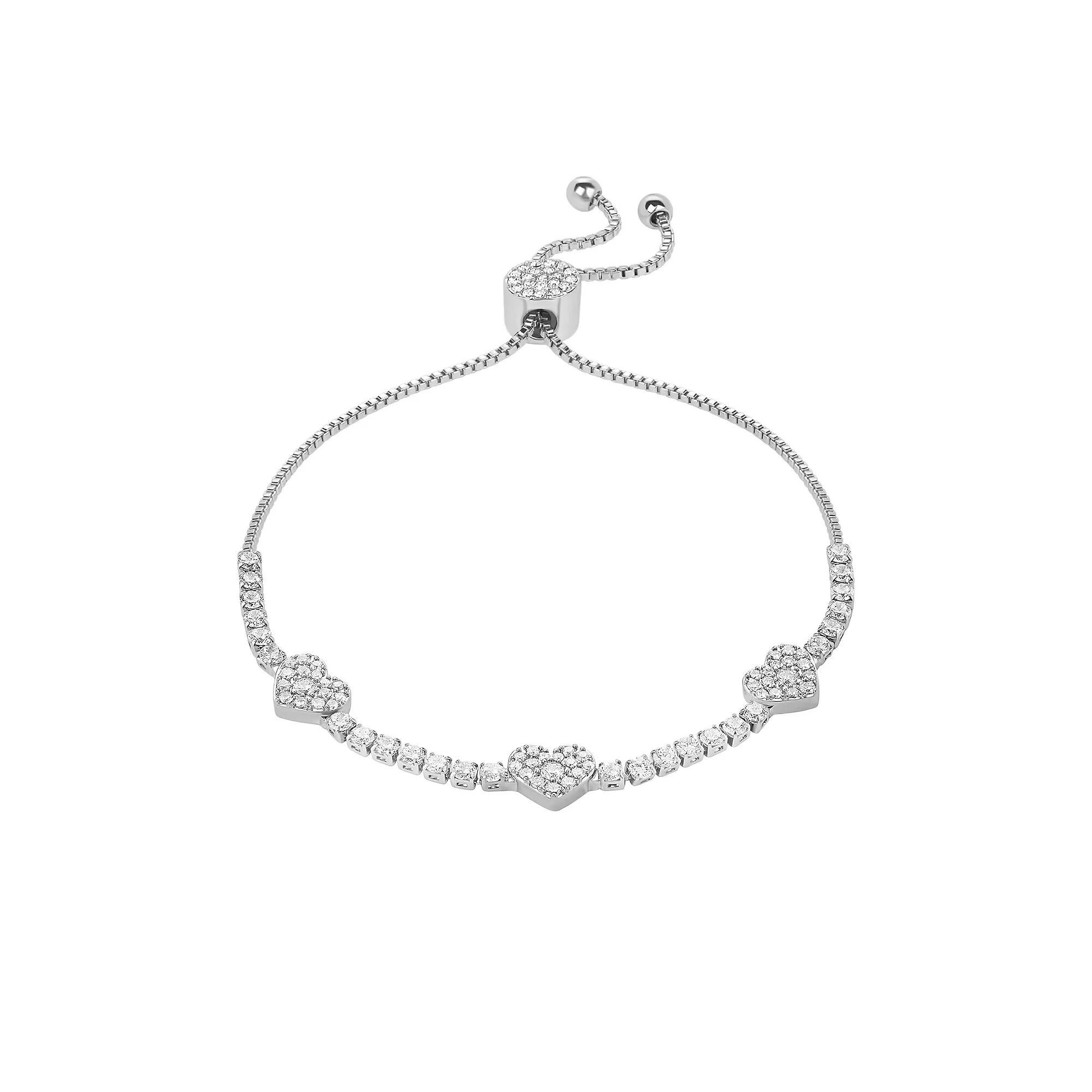 Accessorize in style with this Brilliance fine silver plated cubic zirconia triple heart adjustable bracelet. Click on this JEWELRY & WATCHES GUIDE to learn about fit, styles, materials and more! Accessorize in style with this Brilliance fine silver plated cubic zirconia triple heart adjustable bracelet. Click on this JEWELRY & WATCHES GUIDE to learn about fit, styles, materials and more! FEATURES Length: 10 in. Clasp: adjustable Nickel free Metal: brass Plating: silver tone Finish: polished Packaging: boxed Crystal accentsSTONE DETAILS Stone type: cubic zirconia Total weight: 2 3/8 ct. Shape: round Setting: pave, prong Gemstones may have been treated to enhance their appearance. Special care may be required. Please visit our Gemstone Treatment & Special Care Guide for more information. Size: 4-10" ADJ. Color: Silver Tone Clear. Gender: female. Age Group: adult.