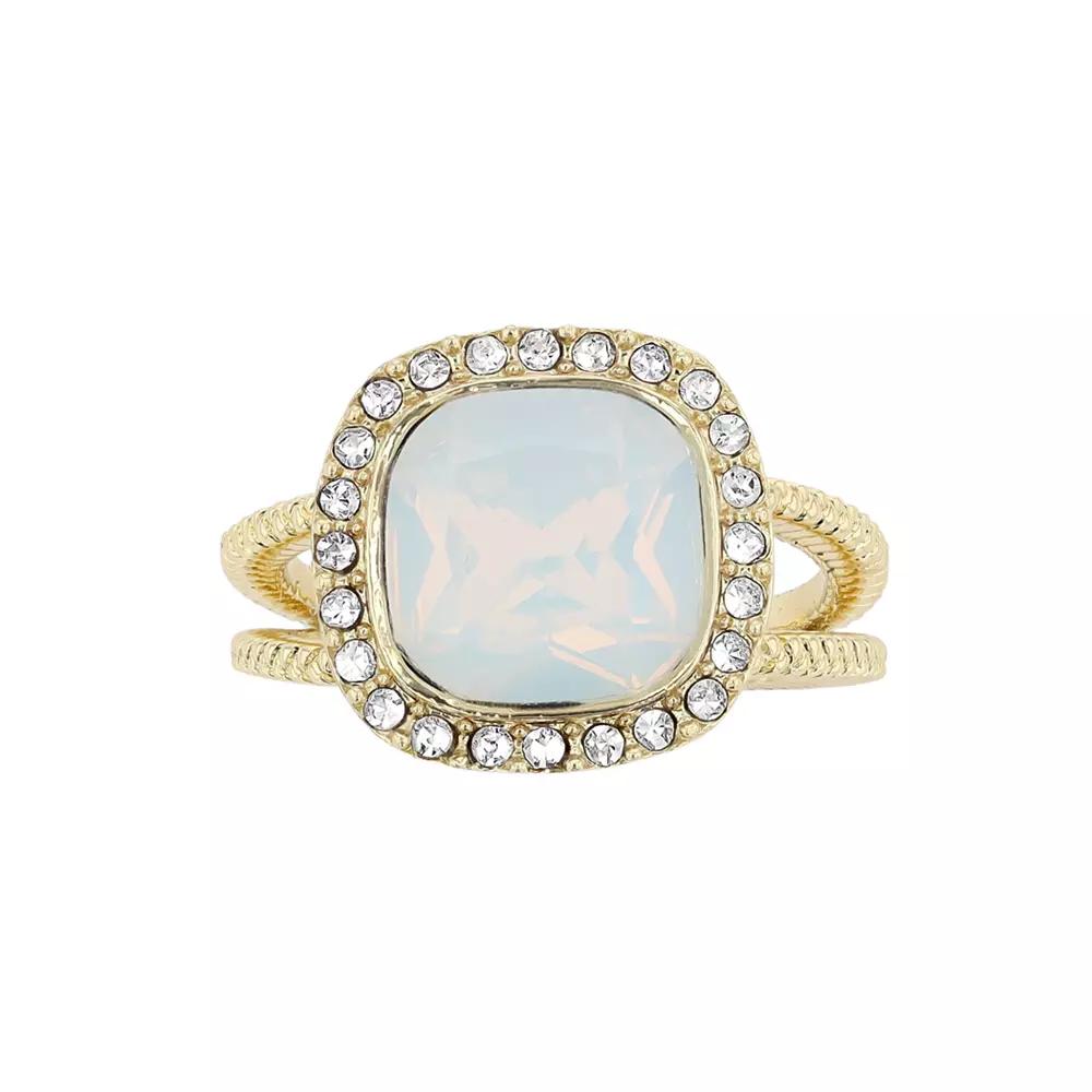 Add a captivating touch to your favorite attire with this distinctively stylish Brilliance simulated white opal crystal halo ring. Add a captivating touch to your favorite attire with this distinctively stylish Brilliance simulated white opal crystal halo ring. Metal: brass Finish: polished Packaging: boxed Plating: gold tone Width: 21.3 mm Nickel free Simulated white opal crystal Size: 9. Gender: female. Age Group: adult.