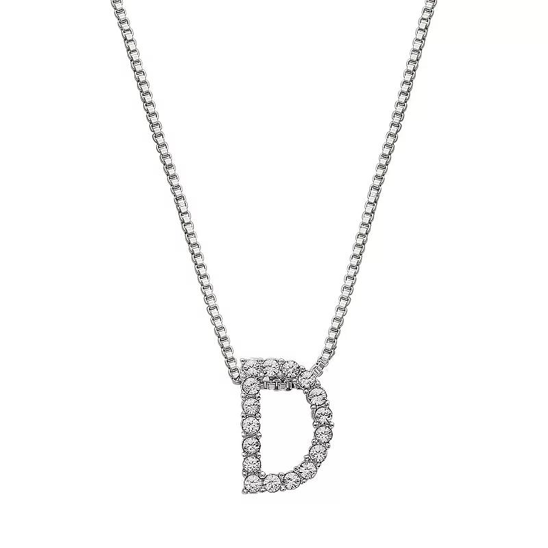 Add a personalized touch to your wardrobe with this dazzling Brilliance crystal initial pendant. Add a personalized touch to your wardrobe with this dazzling Brilliance crystal initial pendant. Nickel free Metal: brass Chain length: 18 in. Plating: rhodium Packaging: boxed Finish: polished Chain type: boxSTONE DETAILS Total weight: 1/6 ct. Shape: round Setting: pave Size: 18". Color: White. Gender: female. Age Group: adult.