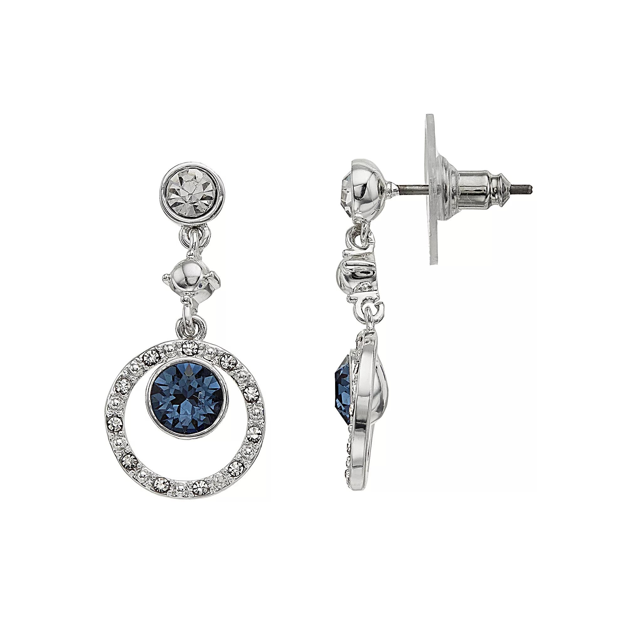 Create a sophisticated look with these blue and white crystal drop earrings. Create a sophisticated look with these blue and white crystal drop earrings. Length: 25.7 mm Backings: post Nickel free Metal: brass Plating: silver tone Finish: polished Crystal accents Packaging: boxed Size: One Size. Gender: female. Age Group: adult.