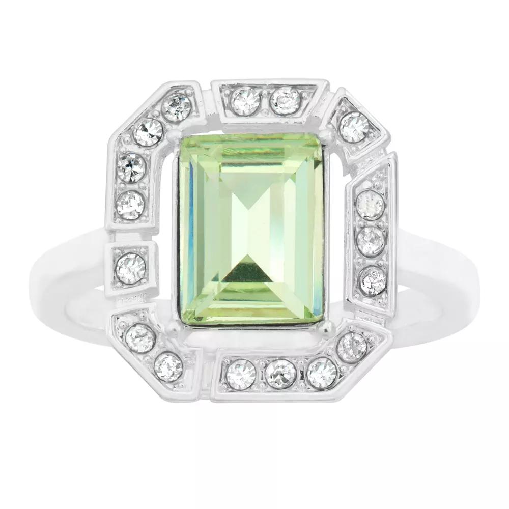 Adorn yourself with this unique and elegant Brilliance green crystal ring. Adorn yourself with this unique and elegant Brilliance green crystal ring. Width: 15.3 mm Metal: brass Plating: silver tone Finish: polished Packaging: boxed Nickel free Crystal accents Size: 7. Gender: female. Age Group: adult.